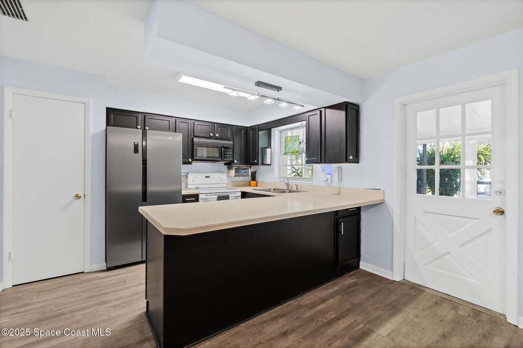 Sought after one-story townhome in a prime location. Welcome to 410 Emerald Dr S, a charming coastal retreat nestled in on of South Indian Harbour Beach desirable areas. This beautiful maintained home blends relaxed FL living with modern comforts - just minutes from the beach, river, parks and dining venues. Step inside to find a light filled, open living area with fresh neutral decor, LVP flooring, and large windows. The kitchen features ample solid wood cabinetry and a casual breakfast bar. The large tiled sunroom provides extra space and leads to the beautiful common pool area. The home boasts two large bedrooms and two bathrooms. The home also has an extra long one car garage and plenty of guest parking. Accordion hurricane shutters. A-rated schools and close to Canova Beach Dog Park, Several Restaurants, Publix, Aldi. Walmart, Gleason, Oars & Paddles Park, Eau Gallie Blvd with direct path to I-95. Come see why locals love Indian Harbour Beach - your coastal lifestyle starts here