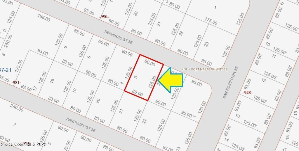 It's a 0.23 acre buildable residential lot available in Port Malabar Unit #18 of Palm Bay. Located in the southeast section, this lot is just 1.9 miles - 4 minutes to Columbia Elementary School, 2.9 miles - 7 minutes to the Publix Supermarket, 11.3 miles - 27 minutes to Melbourne Airport, and 16 miles - 28 minutes to the beaches of Indialantic. From exit #173 of I-95 go west on Malabar Road for .2 miles, left on San Filippo Drive for 3.8 miles, and right on Traverse Road. The lot will be on your left. Owner will only consider (a) a full price offer, and (b) a closing AFTER 01/02/2026 (this is for tax purposes).