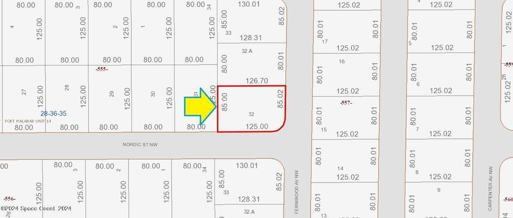 It's a .24 acre buildable residential corner lot available in Port Malabar Unit 14 of Palm Bay. Located in the northwest section, this lot is just 2.7 miles - 6 minutes to McAuliffe Elementary School, 2.6 miles - 7 minutes to the Winn Dixie Supermarket, 10.4 miles - 23 minutes to Melbourne Airport, and 13.4 miles - 30 minutes to the beaches of Indialantic. From exit #176 of I-95 go west on Palm Bay Road for .7 miles, left on Minton Road for .2 miles, right on Emerson Drive for 1.5 miles, left on Jupiter Boulevard for 1.3 miles, right on Serenade Street for .3 miles, and left on Fernwood Avenue. The lot will be on your right on the northwest corner with Nordic Street. Owner will only consider (a) a full price offer, and (b) a closing AFTER 01/02/2026 (this is for tax purposes).