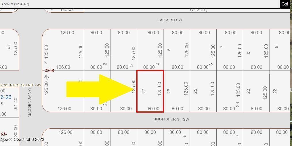 It'a a 0.23 acre single family residential lot [Rs2 Zoning] available in Port Malabar Unit #49 of Palm Bay. Located in the buildable section of Palm Bay, this property is just 4.1 miles -12 minutes to Publix Shopping, 2.1 miles -6 minutes- to Westside Elementary School, and 2.6 miles -7 minutes- to Bayside High School. Property measures 126 feet on the northern boundary and 125 feet on the western boundary.From Exit #173 of I-95 go west on Malabar Road for 1.4 miles. Turn left on Emerson Drive SE and Right on Jupiter Boulevard. Proceed for 1.6 miles and turn left on DeGroodt Road. Proceed 3.3 miles. turn right on Osmosis Drive. Proceed 1 miles and turn left on Madden Avenue SW and Left on Kingfisher Street. The lot will be on the left.Owner will only consider (a) a full price offer, and (b) a closing AFTER 01/02/2026 (this is for tax purposes).