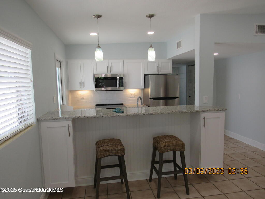 ADORABLE FULLY UPDATED DUPLEX FEATURES STAINLESS STEEL APPLIANCES, CEILING FANS, WASHER/DRYER, TILE AND TERRAZZO FLOORS, CARPORT AND LARGE DRIVEWAY FOR PARKING, PRIVATE PATIO IN BACK WITH SAIL FOR SHADE, OUTSIDE SHOWER. FIRM NO PETS, SHORT WALK TO BEACH, CLOSE TO SHOPPING, LIBRARY, CAPE CANAVERAL REC AREA RENT INCLUDES LAWN AND PEST CONTROL Tenant ocucpied until the end of November