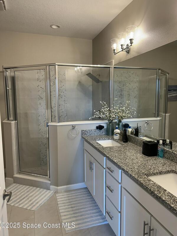 Experience comfort, style, and convenience in this beautiful 2nd-floor home, ideally located just 3 miles from The Shoppes at Viera with nearby golf, dining, A-rated schools, and easy I-95 access. The attached one-car garage includes a 220 outlet for EV parking. Inside, enjoy custom tile flooring throughout, an open layout with vaulted ceilings, and a designer kitchen featuring granite countertops and state-of-the-art stainless-steel appliances. The primary suite offers a walk-in closet and dual-sink vanity beneath a large mirror. Step onto the east-facing balcony to take in peaceful waterfront and sunrise views. Available furnished if desired--your perfect retreat awaits!