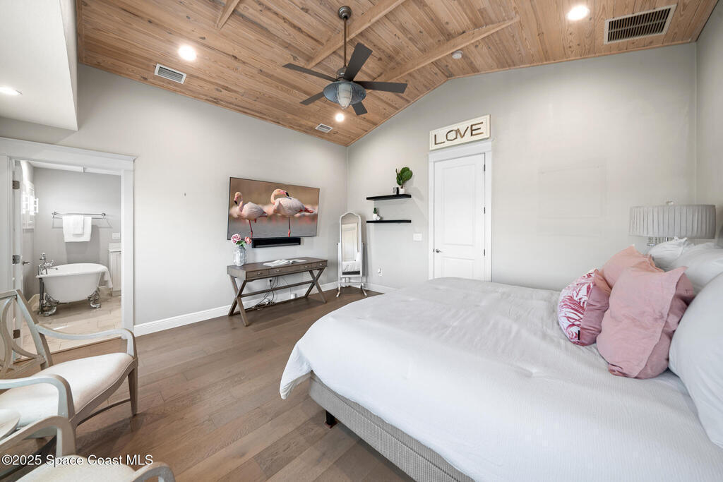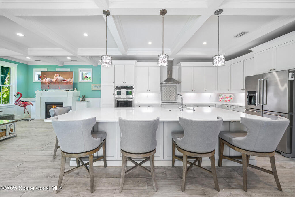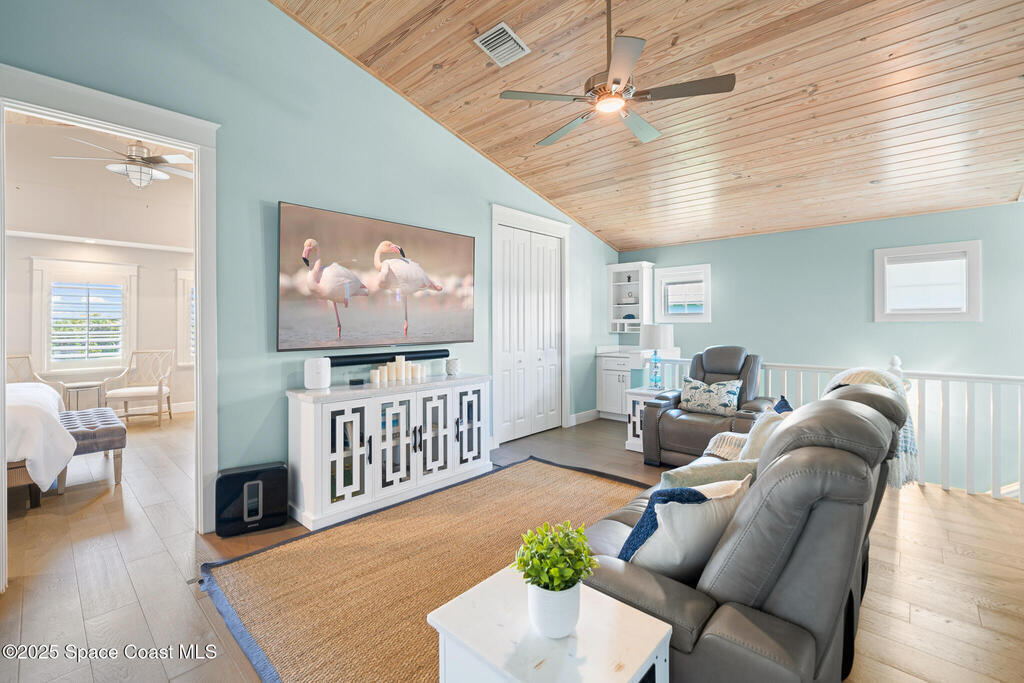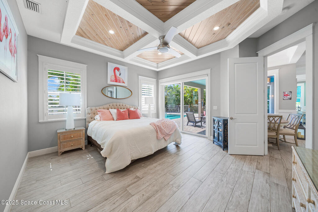 GORGEOUS EXECUTIVE COCOA BEACH POOL HOME FOR LEASE!!! Built in 2017 and backing to the Cocoa Beach Golf Course, this 2,863 sq ft luxury home blends coastal charm with elevated modern living. Enjoy 3 bedrooms & 3.5 baths, including two private en suites--one on the main level and one upstairs paired with a secondary living space for privacy and multigenerational living. Soaring vaulted, coffered, and tongue-and-groove ceilings add warmth and character. The gourmet kitchen features premium stainless appliances, double oven, convection cooktop, beverage fridge, farmhouse sink & large quartz island. Step outside to a private tropical retreat with saltwater pool, heated spa & lush landscaping. Fully furnished with 2-car garage + extra paver parking. Pool & lawn care included. Walk or golf-cart to Cocoa Beach Country Club, and you're just about 1 mile from the heart of downtown Cocoa Beach--restaurants, shops, events & public beach access. Also listed for sale at $1.31M. Seeking annual lease.