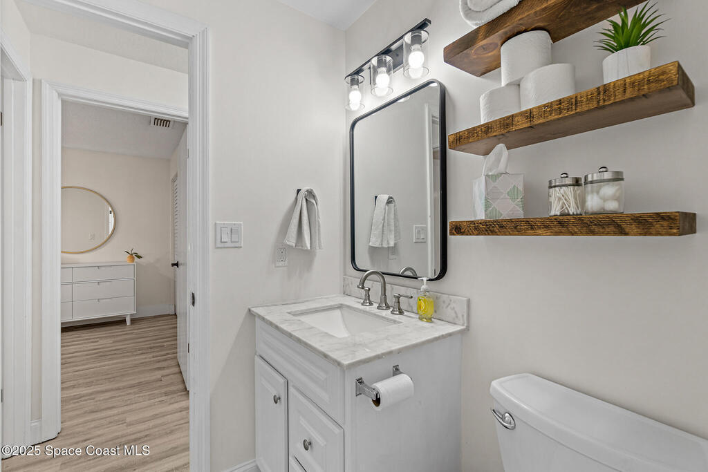 This completely renovated home sits just blocks from the beach in prime Cape Canaveral.Catch rocket launches from your private backyard, then head inside to discover a stunning full renovation. Chef-ready kitchen w/ white shaker cabinets, granite counters, tile backsplash, and stainless appliances. Luxury vinyl w/ underlayment flows throughout the spacious, light-filled rooms. Indoor laundry room keeps things convenient, while your landscaped yard and storage shed add functionality.NO HOA means you control your destiny--run it as a short-term rental powerhouse or move right in as your beachy primary residence. Two assigned parking spots seal the deal.Location: beach 8 minutes away, Port Canaveral close, SpaceX and Space Force practically neighbors, Orlando/airport 45 minutes out. Shopping and schools nearby.Whether you're collecting rental income or collecting seashells. This is Cape Canaveral living at its finest!