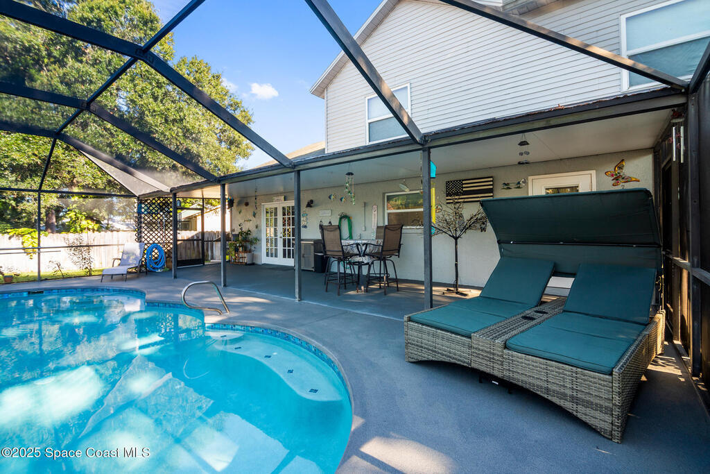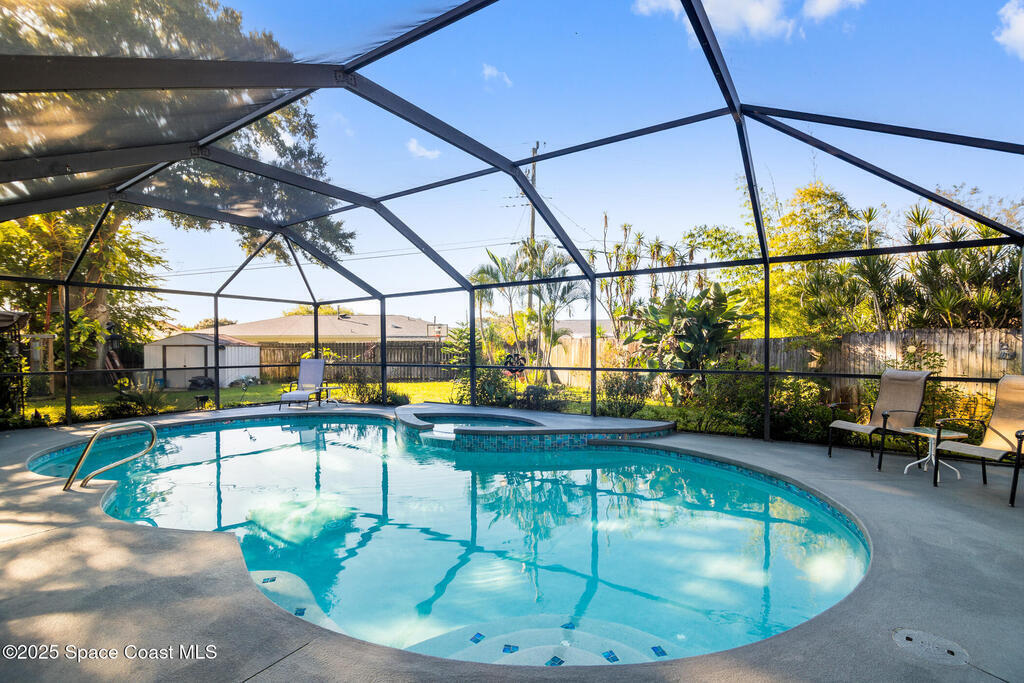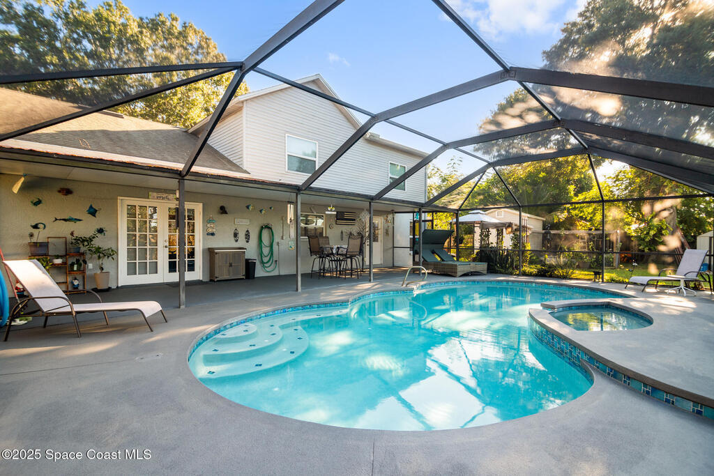 Stylish, spacious, & designed for entertaining, this beautifully updated Pineland Park pool home offers the ultimate Florida lifestyle inside & out! Situated on a huge private lot with a fully fenced backyard, the property is surrounded by mature trees that create both privacy & a park-like setting. Step out of the French doors to your own backyard oasis featuring an incredible sparkling pool & hot tub, recently resurfaced & featuring a new pool heater & salt system. The pool area includes a spacious under-truss covered porch & screened lanai, perfect for lounging, dining, or entertaining. Beyond the pool, the huge backyard offers endless space for recreation, play, or gatherings, & includes two storage sheds for tools, pool supplies, & outdoor gear. Inside, the home boasts a true open floor plan with a large great room & dining area, highlighted by luxury vinyl plank flooring throughout the entire home - no carpet! The fully updated kitchen is a showstopper featuring modern cabinetry