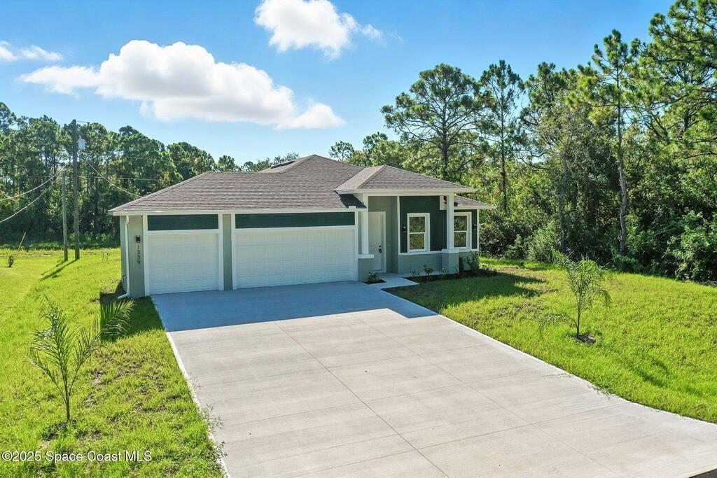 Move in Ready! $15,000 Flex Cash offered! This thoughtfully designed home features a spacious 3-car garage. The home has energy-efficient impact windows throughout. The grand 8' front door and soaring 9'4'' ceilings create an impressive ambiance, ideal for entertaining in this elegant Palm Bay residence. Additional upscale features include porcelain wood-look tile flooring, granite countertops, soft-close cabinetry, and many other premium upgrades. The owner's suite offers a luxurious walk-in shower and a large walk-in closet for added convenience. Please note that the photos showcase a previously built home with the same floor plan.