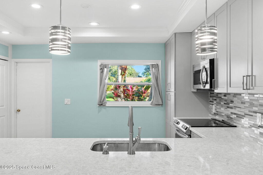 Price adjustment! Looking for your first home or to downsize? This home is move-in ready for you to spend years in secure comfort. Beautifully updated open living and kitchen with so much storage and space for counter seating is ideal for modern living. With impact-rated windows, brand new front door, A/C 2023, Roof 2017, WH 2019, all the insurance items are in place for an affordable policy and ownership costs low! A Murphy bed in the back bedroom maximizes the use of the bright room for office and guests. The privacy fence will keep your pets or children safe with room to enjoy your outdoor space in this centralized community.