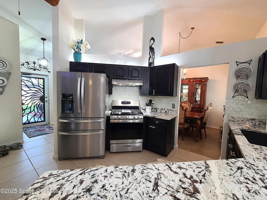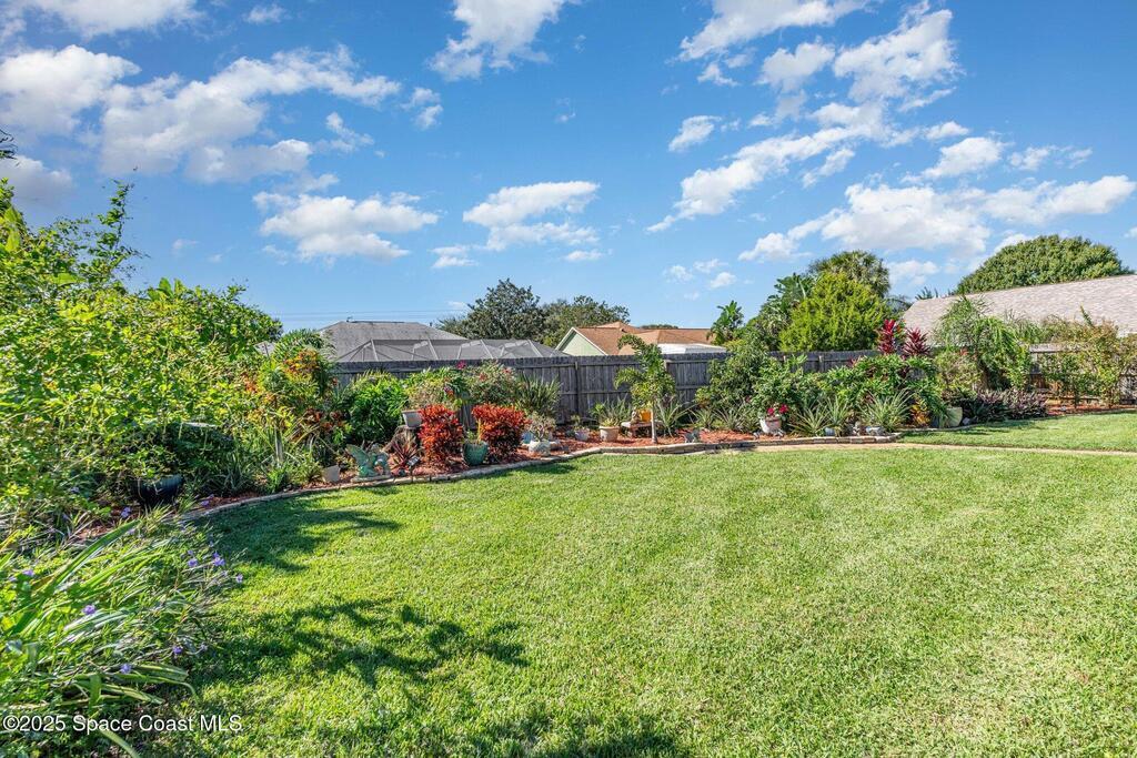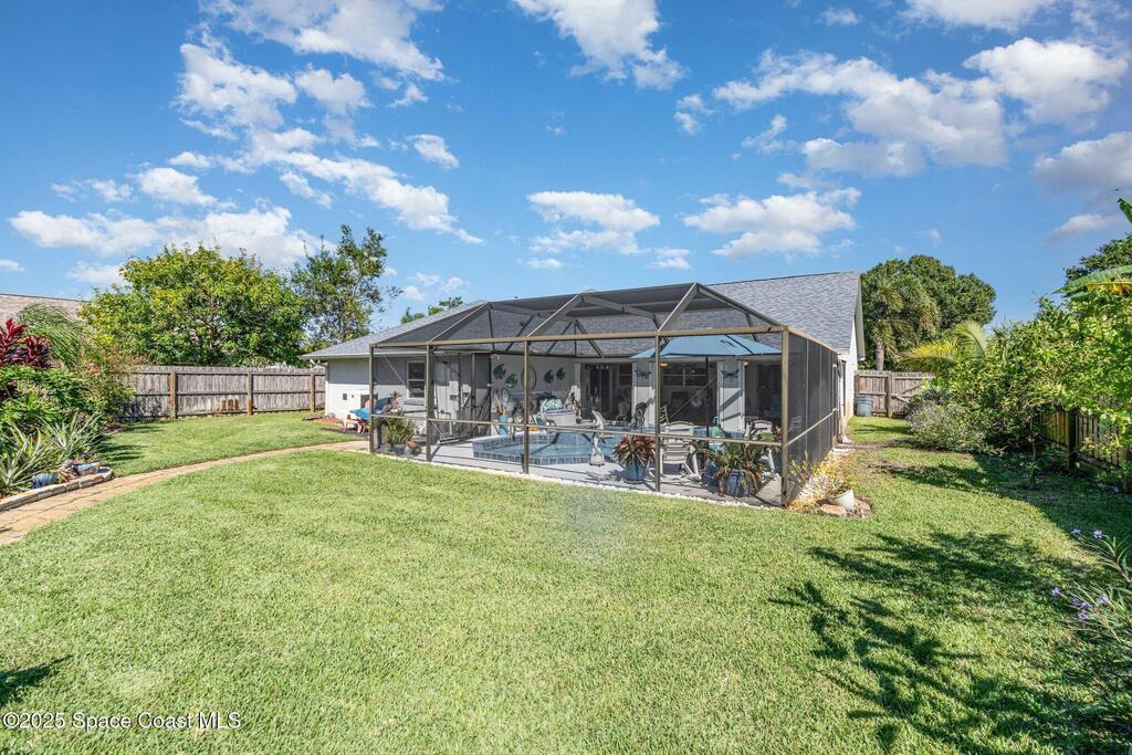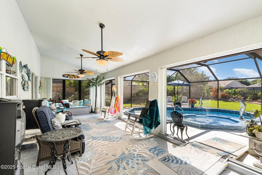 Step into this beautifully updated split-plan pool home nestled in a sought-after Rockledge neighborhood. Designed for comfort and style, this home features impact windows, accordion hurricane shutters for the expansive covered porch, luxury vinyl plank flooring, and granite countertops. The natural gas range, new plumbing fixtures, modern lighting, and fresh interior paint add to the home's appeal. Enjoy the tranquility of your oversized cul-de-sac lot with no HOA, surrounded by lush landscaping and mature trees. The sparkling heated pool and spa create the perfect setting for relaxing or entertaining in your own backyard retreat. With vaulted ceilings and thoughtful updates throughout, this home is move-in ready and ideally located just minutes from Blue Origin, SpaceX, Northrop Grumman, Harris, Boeing, the beach, and the popular Avenues at Viera. Don't miss this rare opportunity to own a slice of paradise in the heart of the Space Coast! See docs tab for upgrade/feature sheet.