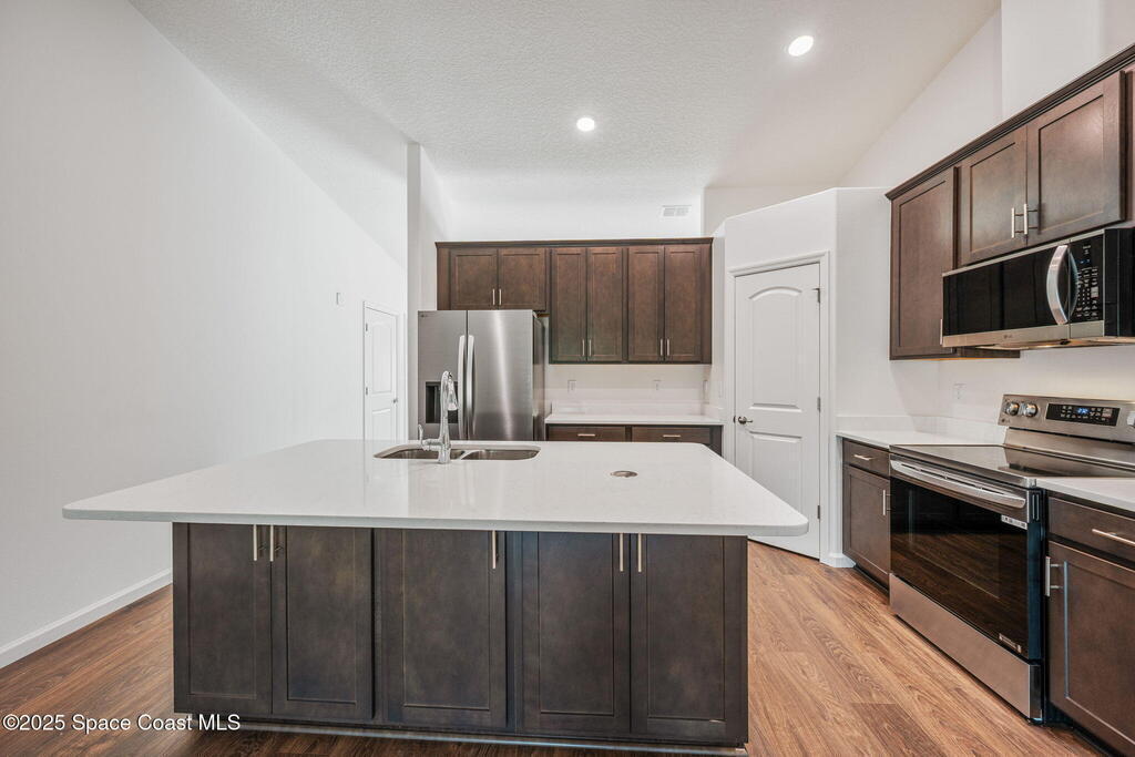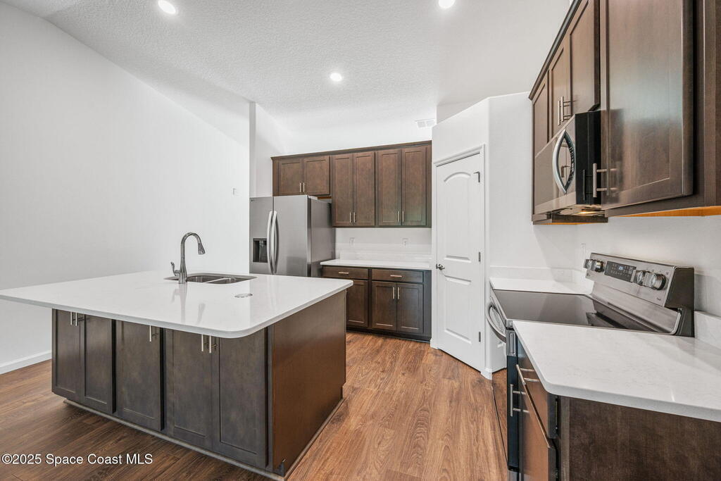 Brand New-4 BD/3BA Home with 2-car Garage & large 20x12 Trussed Covered Screened Porch--perfect for relaxing outdoors while Stone Accents on the Entry Welcome You Home. The Open Concept Island Kitchen features Quartz Countertops, Undermount Sink , 42 in Upper Cabinets with Crown Molding, Stainless Appliances (including a 25-cu. ft. Fridge) + Corner Pantry. Durable Mohawk Revwood Plank floors flow throughout with tile in baths & laundry. The primary suite offers a Tray Ceiling, Huge Walk-In Closet, & an Impressive 6' Tiled Shower. Other features include: 5' Tile Shower in Bed 4 Private Bath, Attic Stairs, Rounded Drywall Corners, Backyard Flood Lights, Dimmable LED lighting in Great Room & Primary. Kitchen & Baths Vent Outside, Inside Laundry, R38 Ceiling Insulation with Radiant Barrier & 1-year Builder/10yr Structural Warranty. Limited-time: $15K Flex Funds or reduced 30-year rate with preferred lender for qualified buyers.