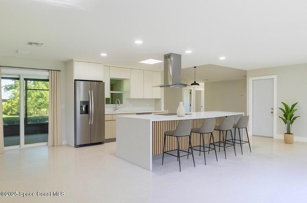 Beautifully updated Vero Beach home featuring a NEW ROOF, new water heater, and new IMPACT windows for lasting value. Step inside to a bright open floor plan with a modern kitchen showcasing quartz countertops and stainless-steel appliances. Enjoy indoor-outdoor living through French doors opening to a screened patio with tropical landscaping. The stylish bathroom offers a walk-in shower, plus a spacious two-car garage. Just appraised at $542,000, this home delivers great value and move-in-ready comfort, minutes from beaches, shopping, and top schools.RMS & SZ SUB TO ERR