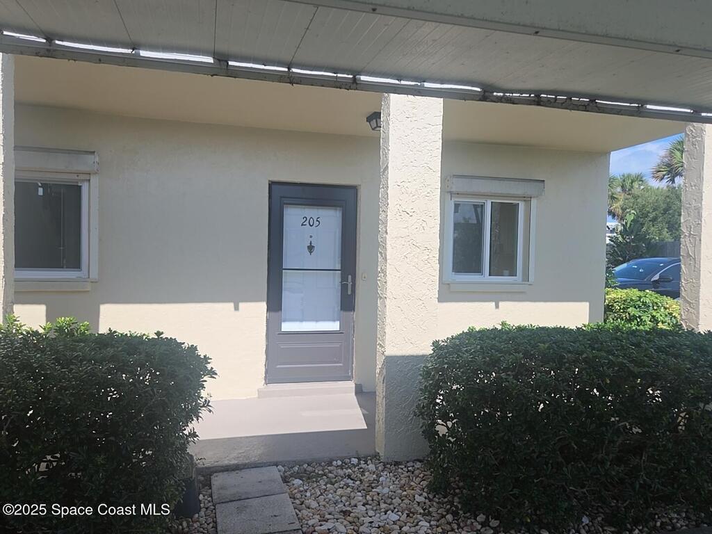 Introducing 201 Saint Lucie Lane Unit 205 in Cocoa Beach, a delightful 1st-floor end unit that's perfect for beach enthusiasts! Nestled just a short walk from the beach, nearby Ron Jon Surf Shop, and several popular dining spots, this 2-bedroom, 2-bathroom condo offers comfortable living with a touch of luxury. Enjoy a morning coffee or an evening breeze on your screened-in patio, complete with a sizable storage closet. The unit features elegant granite countertops, durable ceramic tile, and laminate flooring throughout. For added security, roll-down storm shutters are installed. St. Lucie Gardens creates a welcoming atmosphere with its community clubhouse and sparkling pool--ideal for embracing a relaxed, coastal lifestyle. Come see why living here could be your dream come true.