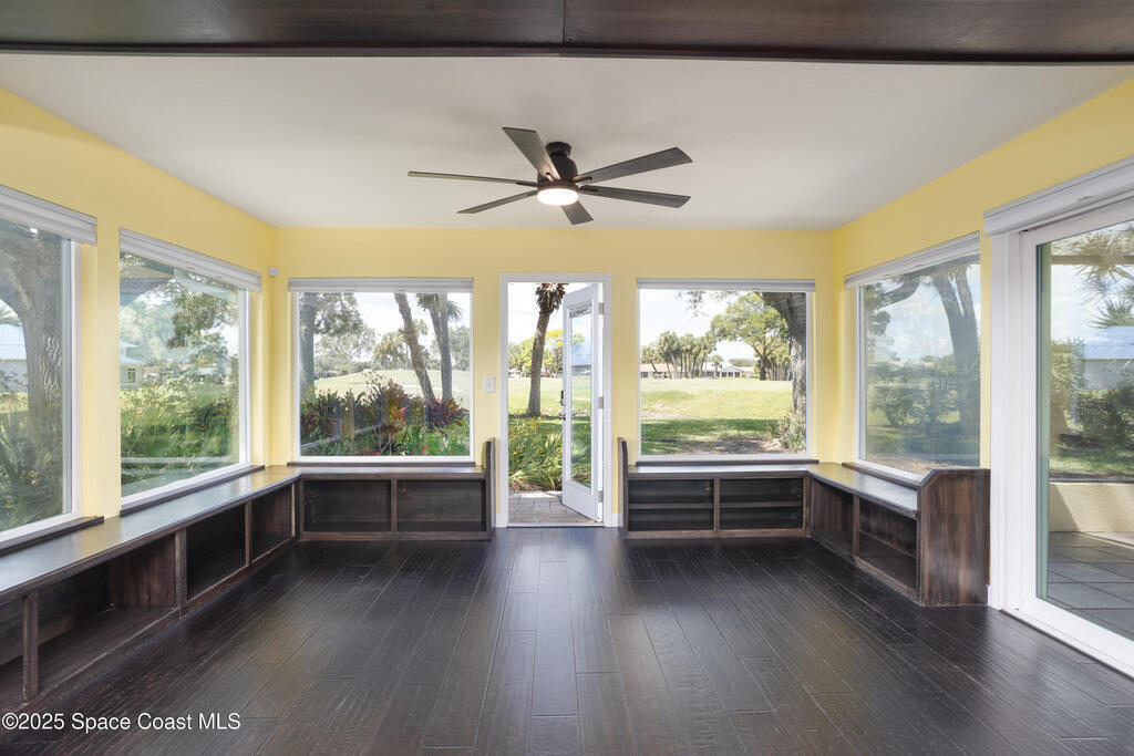 Nestled in a resort-style country club community, this one-of-a-kind remodeled Annapolis model is a golfer's dream. With panoramic views of the Gordon Lewis-designed golf course and a prime location close to the clubhouse, this home captures the very best of Florida living. New roof, gutters and exterior paint! Inside, the open layout showcases a beautifully updated kitchen with Quartzite countertops, renovated bathrooms, and impact windows for peace of mind. Wide-plank solid walnut wood flooring and elegant tile run throughout, complementing the spacious Florida room and screened lanai where you can relax and take in the views. Thoughtful upgrades continue with epoxy flooring in the garage, newer cordless blinds, stylish light fixtures, and countless modern details. Completely move-in ready, this exceptional home blends comfort, style, and lifestyle in a community offering top-notch amenities designed to be enjoyed every day.