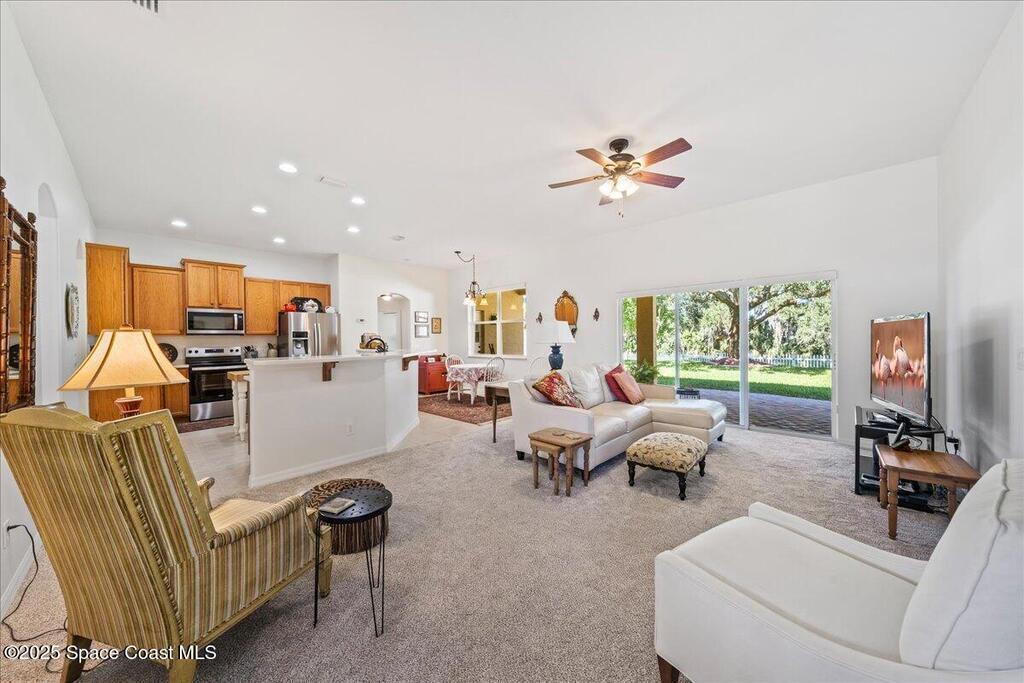 The perfect home for any family! Presenting this meticulous maintained Move in Ready Home in a Gated Community. Beautiful & Welcoming entrance in this 3 bedroom, 2 bath, 2 car garage home. Enjoy large living room / flex space, dining room, A large family room with triple slider door to oversized porch with extensive brick pavers. The Spacious Kitchen offers 42'' wood cabinets with bump stagger design and crown, step up breakfast bar, overlooks the nook area with serene views of backyard. Enjoy a split bedroom plan, owners suite has slider door to porch, a large deluxe bathroom with soaking tub, separate tile shower, dual sink vanity and large walk in closet. Other: roof 2024, new interior paint, Serene views, Dimmers on lightswitch, hurricane panels, All appliances convey, Custom Shades by 3-day blinds, Canal view, private / quiet street with sidewalks, Arch windows, Tall-flat ceilings, Carpet 2024, Lavish landscape, beautiful views, quiet, private, a real Gem of a Home!