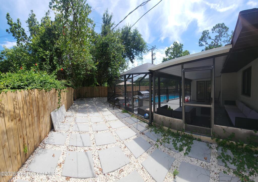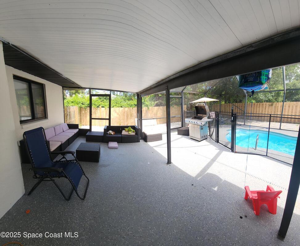 Welcome to your own private oasis in sunny Palm Bay, Florida! This charming pool home features a spacious layout with four bedrooms and two bathrooms. It also boasts a private, fenced-in backyard with a sparkling screened in pool, perfect for relaxation and entertaining. The home has been updated with modern finishes, including a renovated kitchen, updated bathrooms, and stylish new windows and doors. It's the perfect blend of comfort and style!. All new interior doors and trim. Tiled throught home including Garage with A cozy fire place looking over the pool area . Secluded corner property with a peaceful tranquil backyard setting. With a Location like no other, On a Bus Route making Commute To Melbourne and All other Attractions stress free. The property is A Real Gem And a must see. Property needs a roof replacement owner is giving a 13K credit towards a new Roof. With a new Black Roof the property will be a head turner.
