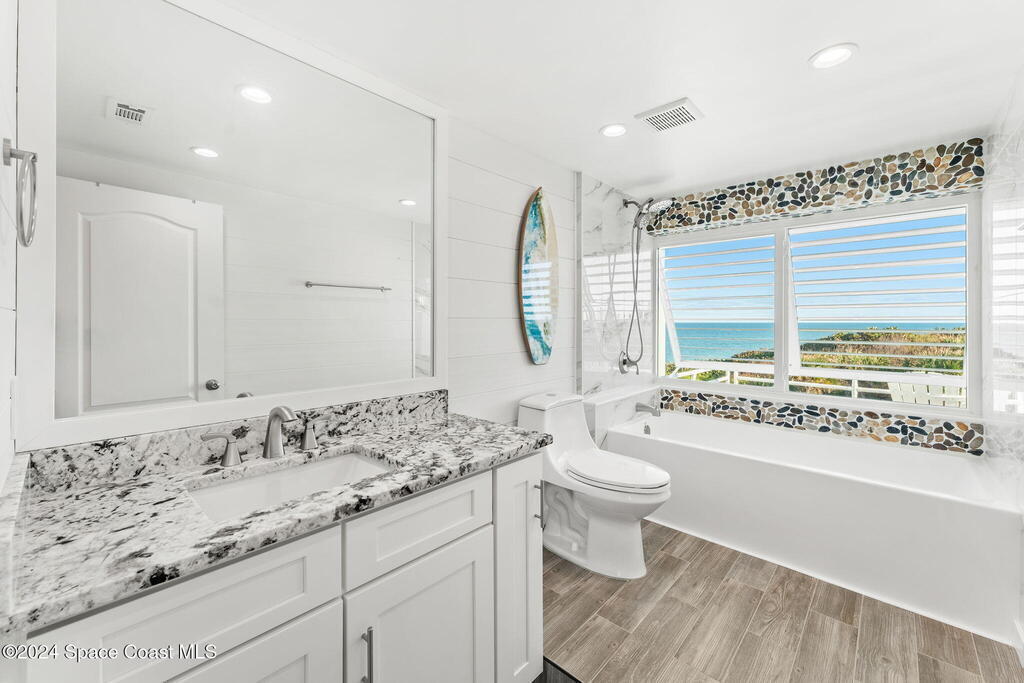 Discover your dream coastal retreat with this stunning oceanfront condo in Melbourne Beach! This two-bedroom, two-bath sanctuary spans 1,256 sq ft, offering an open floorplan that seamlessly blends style and functionality. Enjoy panoramic ocean views and the ultimate peace of mind with impact windows, doors, and shutters. The remodeled kitchen and bath exude modern luxury, while tile and LVP flooring throughout add a touch of sophistication. The primary suite boasts his-and-her walk-in closets, while the guest suite offers a welcoming escape for visitors. Deeded beach access ensures you're steps away from sun-soaked shores, while covered parking and private storage provide convenience and security. Whether it's morning coffee with ocean breezes or moonlit beach walks, this condo delivers the ultimate seaside lifestyle.