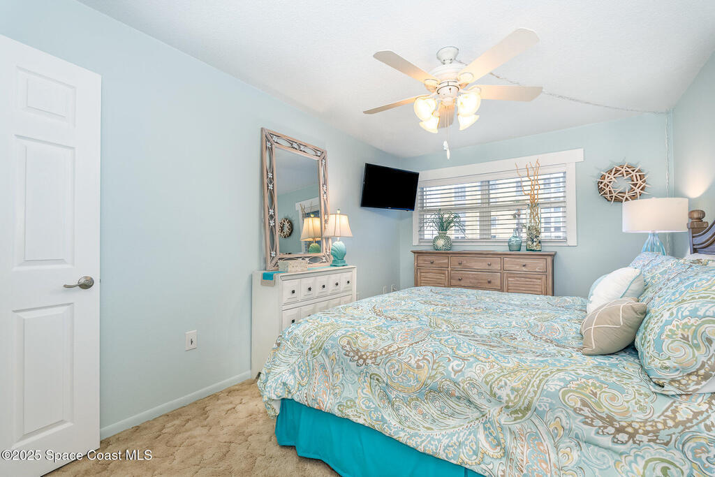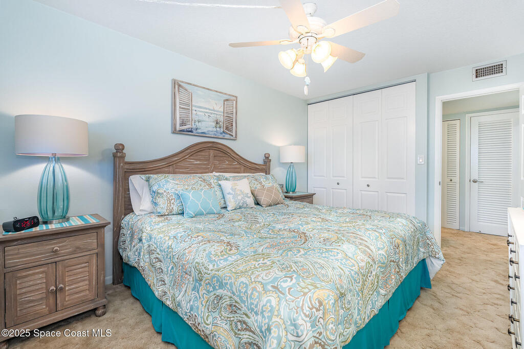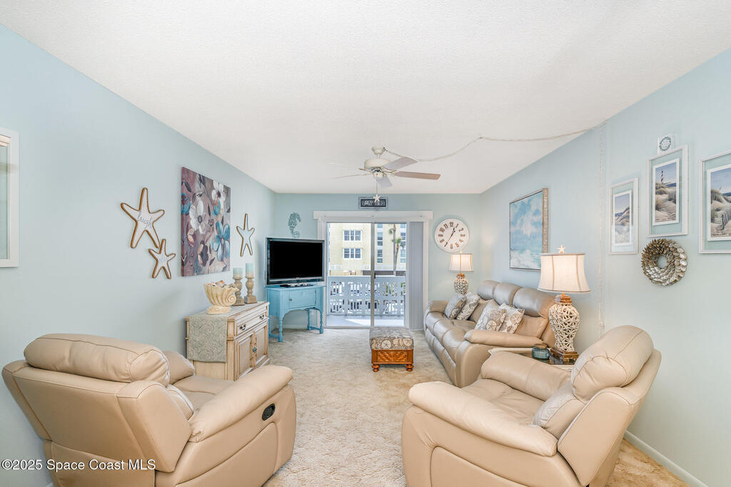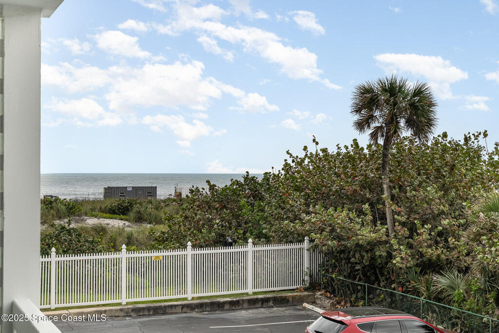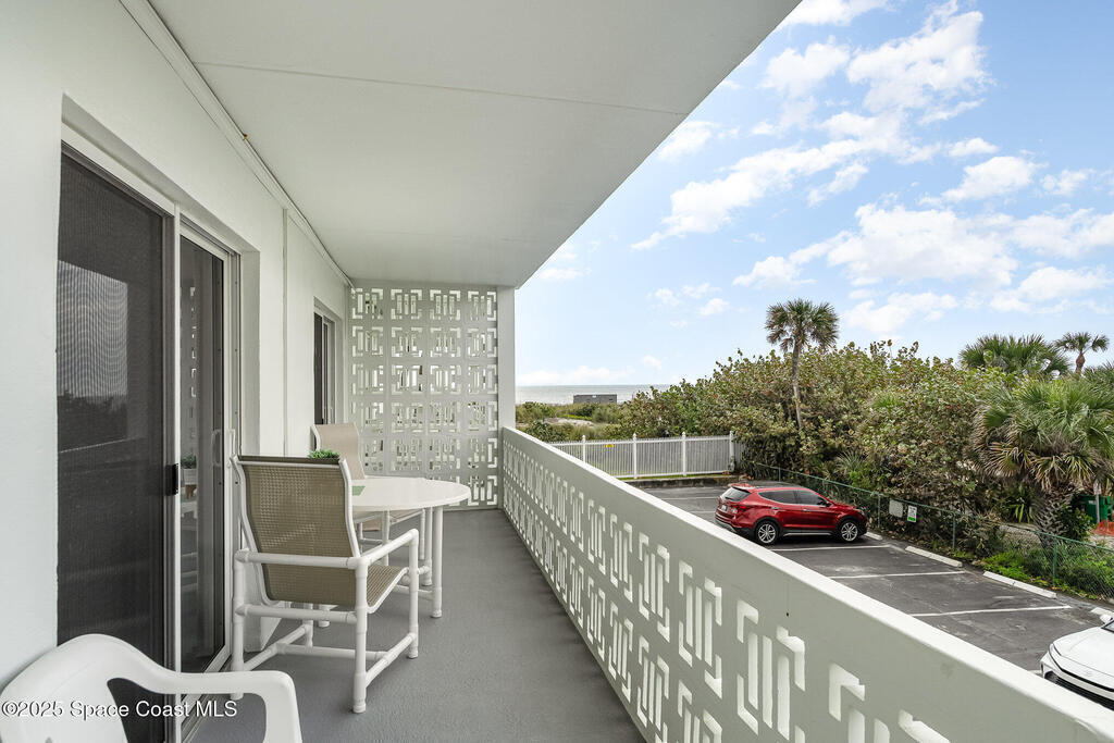 Escape to your own paradise in Cocoa Beach, with beautiful beaches, breathtaking sunrises, and a lifestyle that others Dream of. Stunning second-floor retreat featuring ocean views and an inviting open floor plan with fantastic decor. Kitchen offers stainless steel appliances with plenty of cabinet space. Dining area opens to the living space with sliding doors out to the covered patio. Two spacious bedrooms and a beautiful, remodeled bathroom with a walk-in shower. Condo has updated hurricane windows and sliders throughout with a new electrical panel and hot water tank 2025. Assigned parking, heated community pool and a splash pool for the little ones. HOA is fully funded, and all assessments have been paid. Come see what the Cocoa Beach Lifestyle is all about!