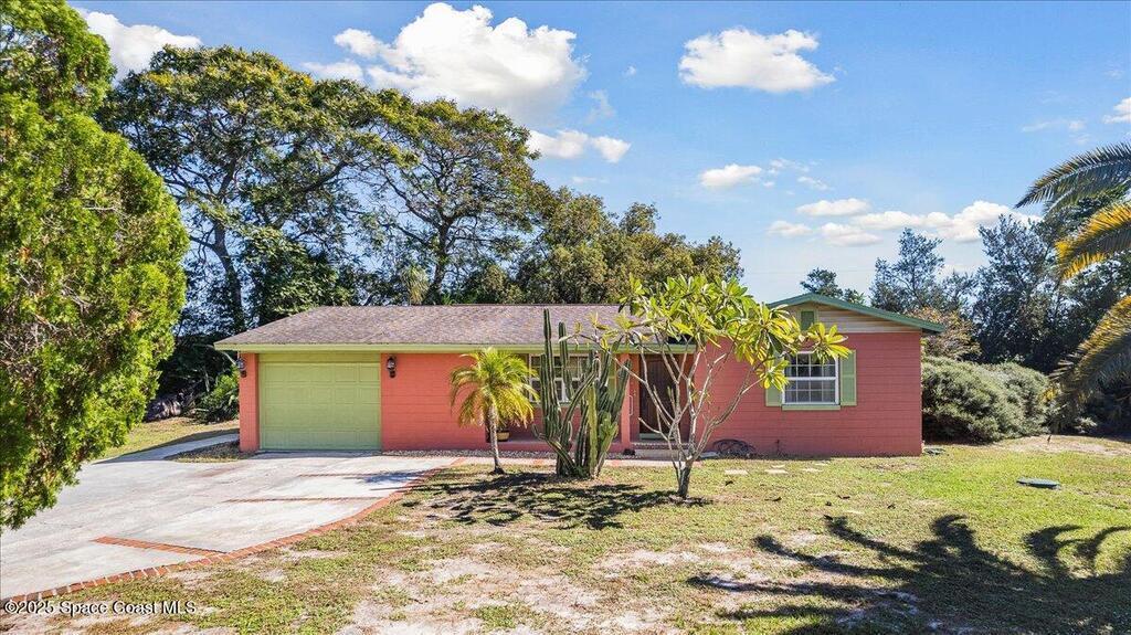 Welcome home to this beautifully maintained 4-bedroom, 2-bath home, lovingly cared for and thoughtfully updated over the years. Major improvements include a new roof pending installation, HVAC 2022, and septic system replaced in 2015 with a fresh service completed this year. The spacious garage features a raised ceiling for additional storage and the circular drive offers everyday convenience. Step outside to enjoy an oversized lot .33 acres with mature Crape Myrtles, Canary Island Palms, and lush greenery. The large screened patio offers extra space for outdoor living. Home is a great location on a corner lot, close to grocery stores, and the highway.
