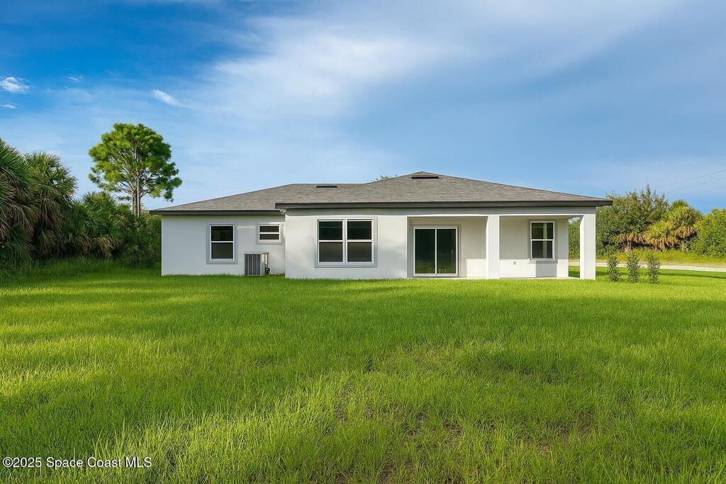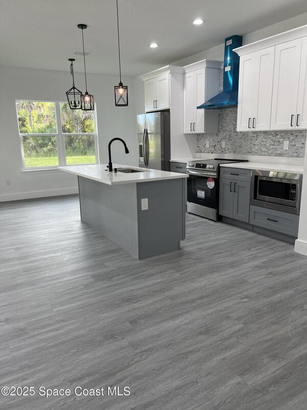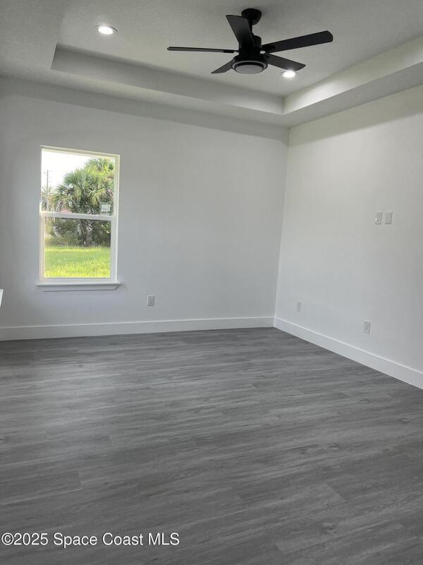 Experience modern living in this brand-new 4-bedroom, 2-bath home located on an oversized 0.28-acre corner lot in Palm Bay, offering plenty of outdoor space and privacy. This property features an open-concept layout with 9'4'' ceilings, impact windows and doors, quartz countertops, stainless steel appliances including refrigerator, and waterproof laminate flooring throughout. Enjoy luxury bathrooms with floor-to-ceiling tile and glass doors, plus thoughtful upgrades such as a water softener system, recessed lighting, extra closet space, and a motorized garage opener. Conveniently located near top-rated schools, shopping, restaurants, and with easy access to I-95. Perfectly designed for comfort and style, this new home provides the feeling of a fresh build with the convenience of immediate move-in. Available now -- schedule your private showing today!