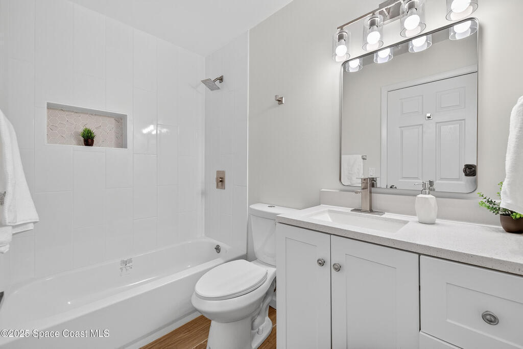 New Price improvement for this stunning 3 bed 2 bath home with a 1 car garage, situated on a private cul de sac road. This home features all brand new 2025 modern updates. Enjoy peace of mind with a brand new architectural shingle roof, hurricane impact windows, doors and a new 2024 HVAC system. Step inside all the natural light, new wood plank tile floors and baseboards throughout, updated granite stone kitchen with wood shaker cabinets, brand new stainless steel appliances. Primary bedroom features a large closet and a gorgeous ensuite modern shower bathroom. Ample size guest bedrooms, updated gust bath with soak in tub, niche and new lighting throughout. Bonus room that can easily be used as an office or a den. Home sits on a elevated corner lot, no flood zone and not on a through street for added privacy. Just minutes from the beach, easy access to I-95, shops, dining hospitals and schools. Easy to show, so book your showing today!