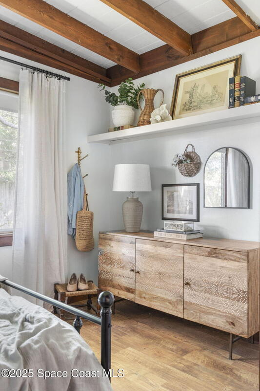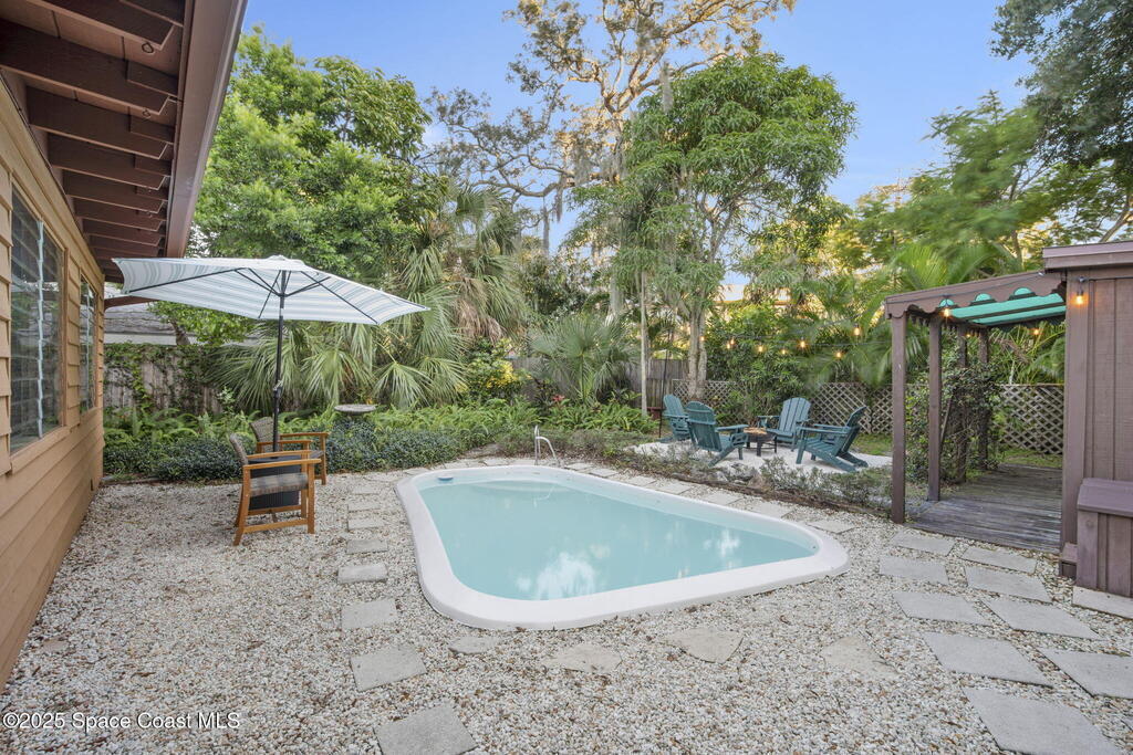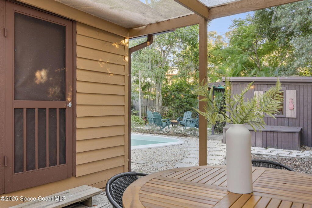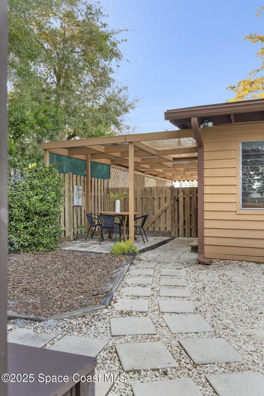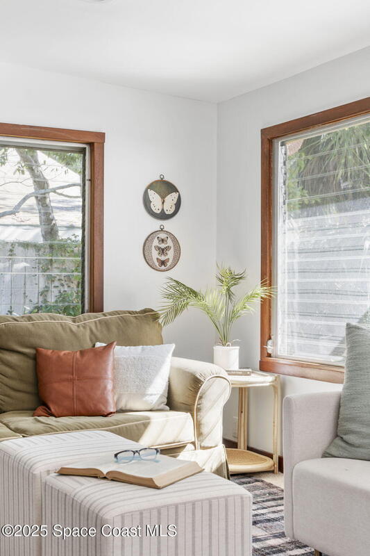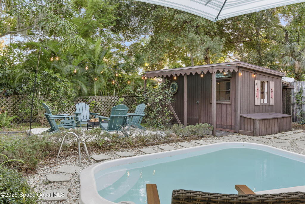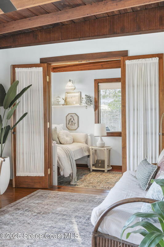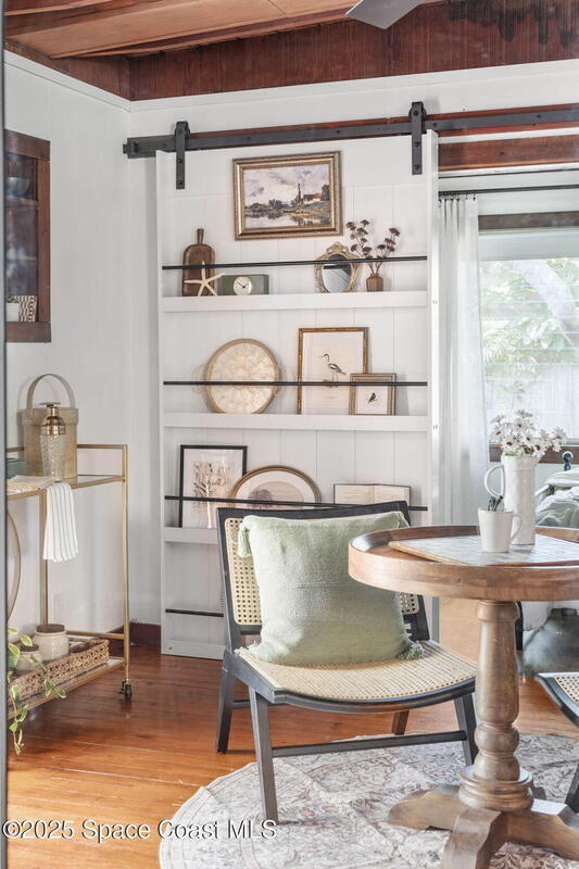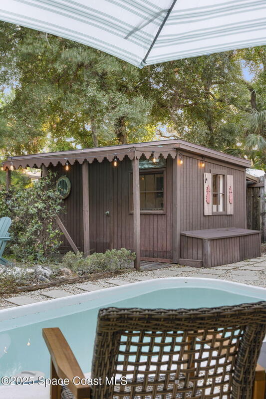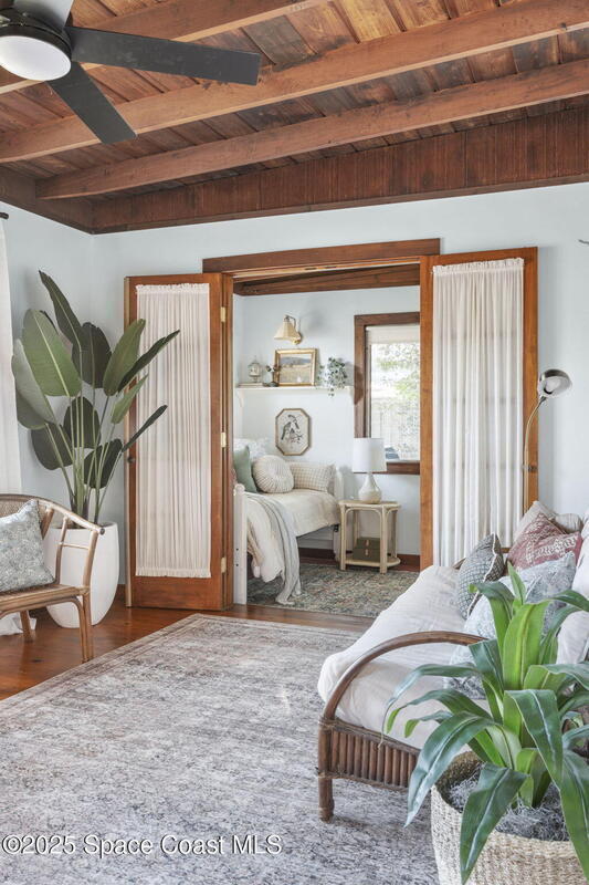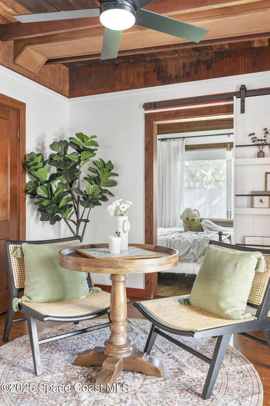 Rare opportunity to purchase a charming cottage with a pool in the most desirable location in the Eau Gallie Arts District. Step into a storybook retreat where historic character meets Florida vacation. You'll find many leather-bound books and it smells of rich cedar. This thoughtfully updated cottage captures the timeless feel of a bed and breakfast--making it an ideal opportunity for investors seeking a charming Airbnb or short-term rental in the thriving EGAD. Every detail tells a story with pristine original hardwood floors, cedar ceilings, doors and thoughtfully curated design details. Inside, you'll find two cozy living spaces, two inviting bedrooms including a primary suite with lounge and full bathroom. The family room opens to a pool bath, exceptional indoor laundry, and a private backyard oasis. Surrounded by lush Florida landscaping--towering oaks, swaying palms, and vibrant ferns--this outdoor space invites slow mornings and starlit evenings with its pool, dining area