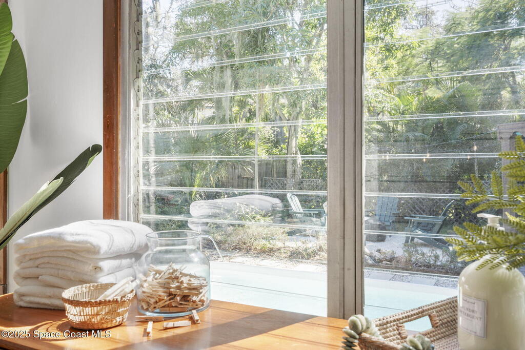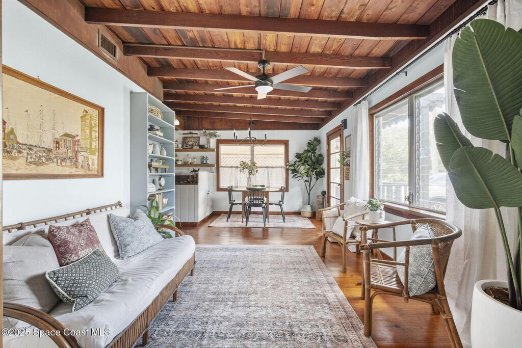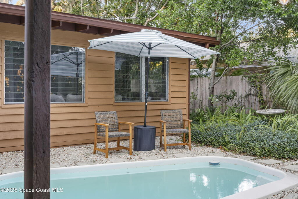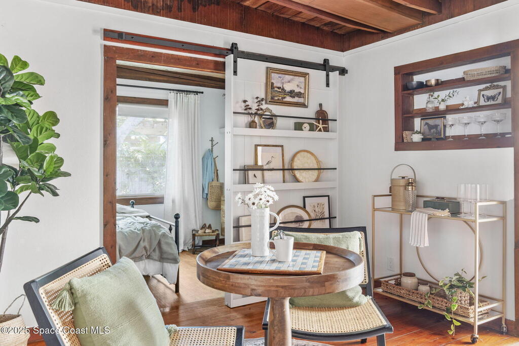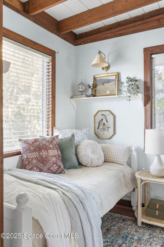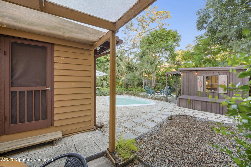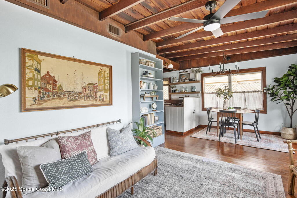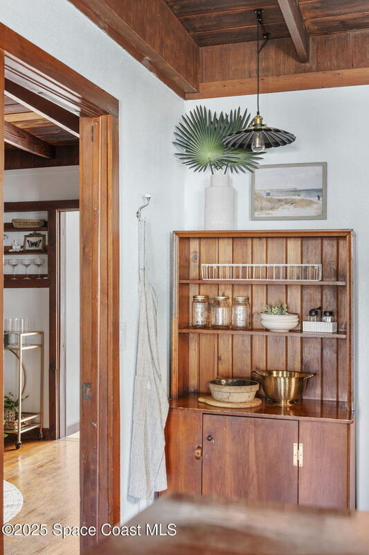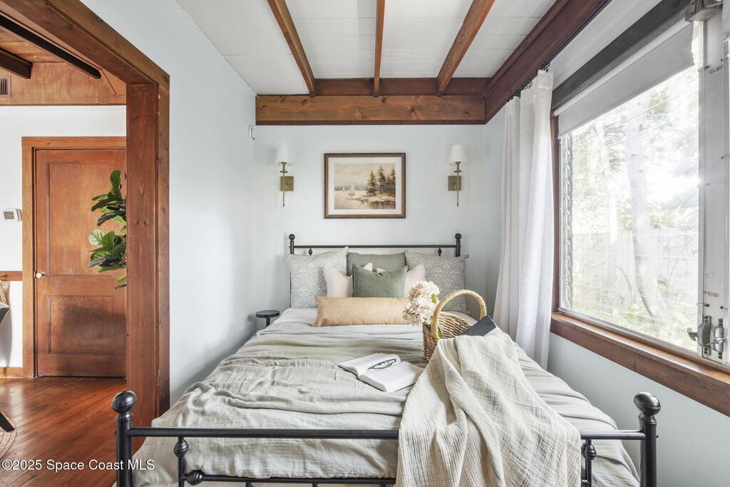 Rare opportunity to purchase a charming cottage with a pool in the most desirable location in the Eau Gallie Arts District. Step into a storybook retreat where historic character meets Florida vacation. You'll find many leather-bound books and it smells of rich cedar. This thoughtfully updated cottage captures the timeless feel of a bed and breakfast--making it an ideal opportunity for investors seeking a charming Airbnb or short-term rental in the thriving EGAD. Every detail tells a story with pristine original hardwood floors, cedar ceilings, doors and thoughtfully curated design details. Inside, you'll find two cozy living spaces, two inviting bedrooms including a primary suite with lounge and full bathroom. The family room opens to a pool bath, exceptional indoor laundry, and a private backyard oasis. Surrounded by lush Florida landscaping--towering oaks, swaying palms, and vibrant ferns--this outdoor space invites slow mornings and starlit evenings with its pool, dining area