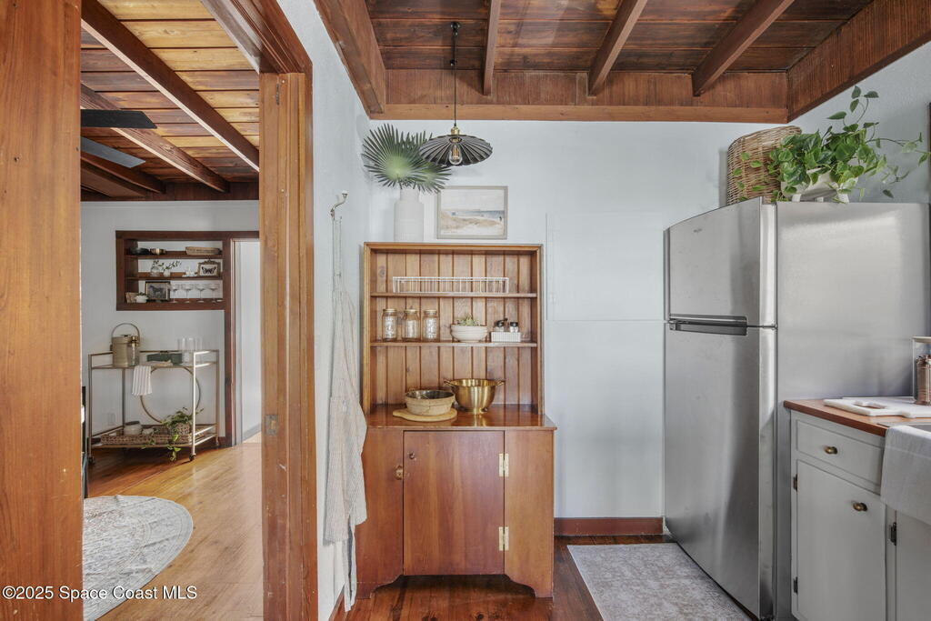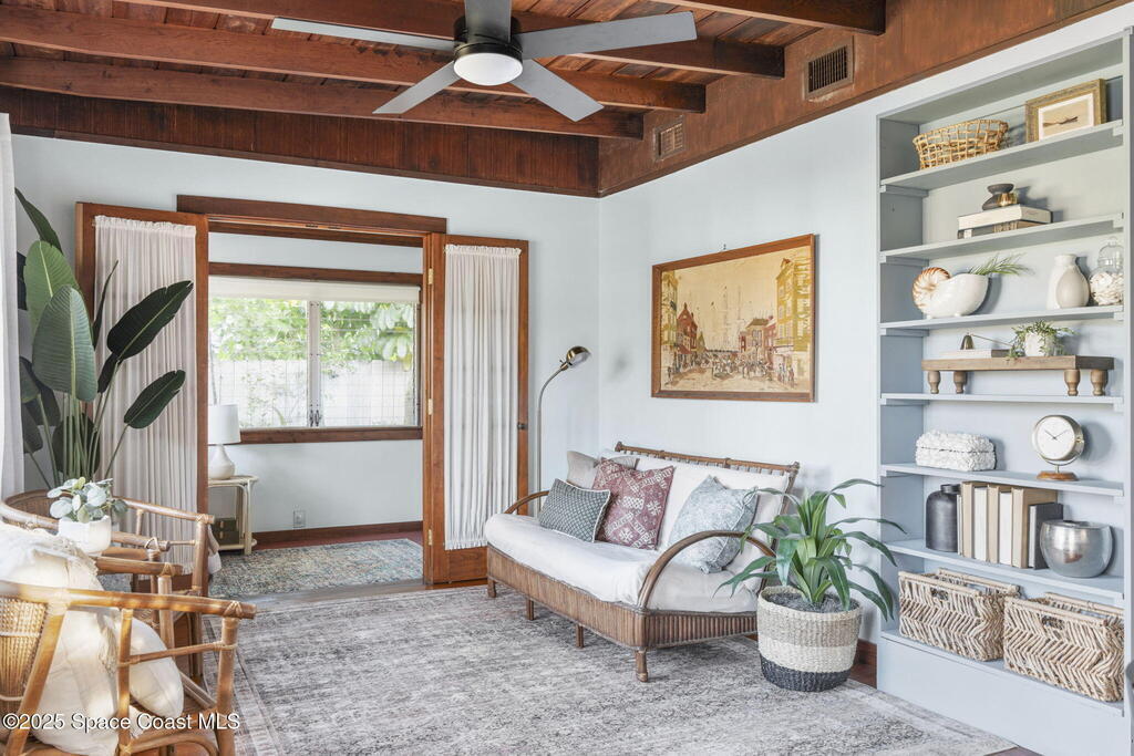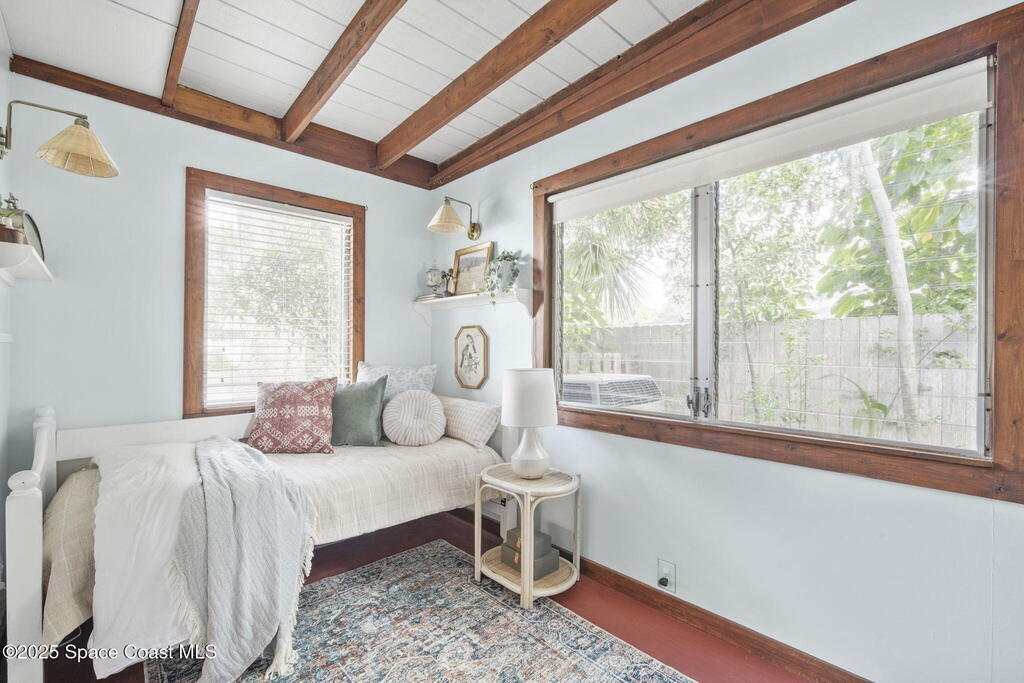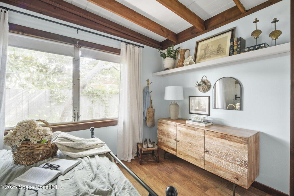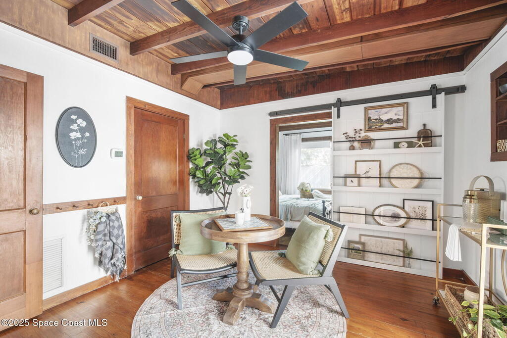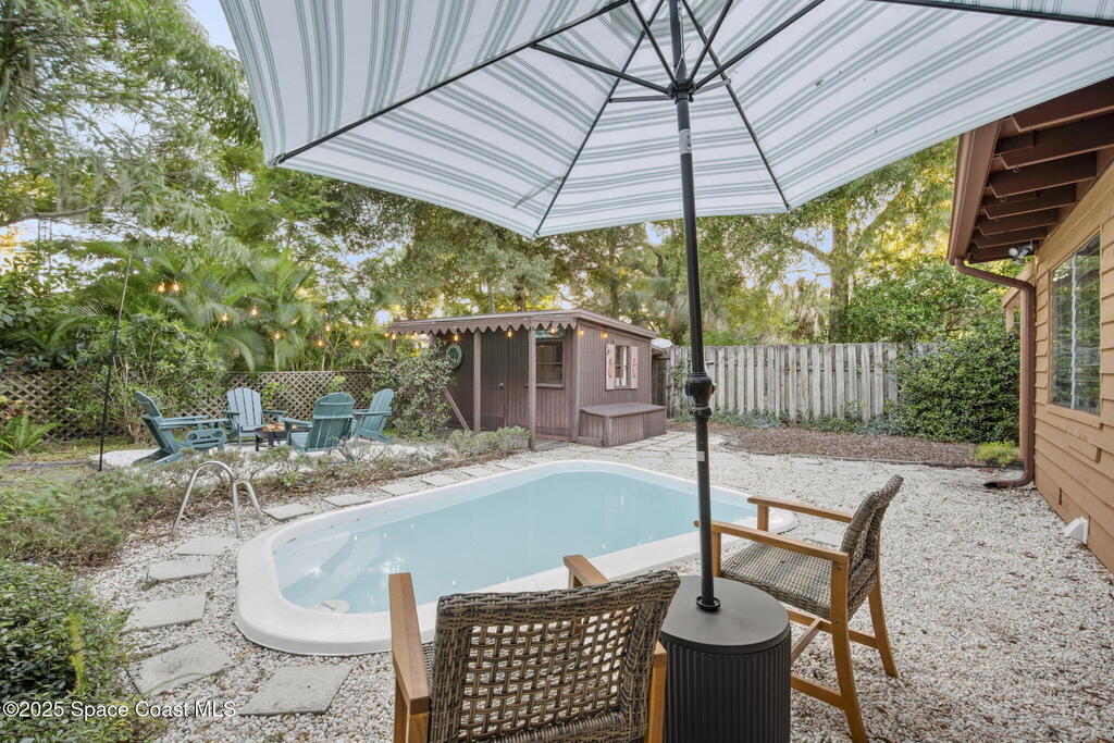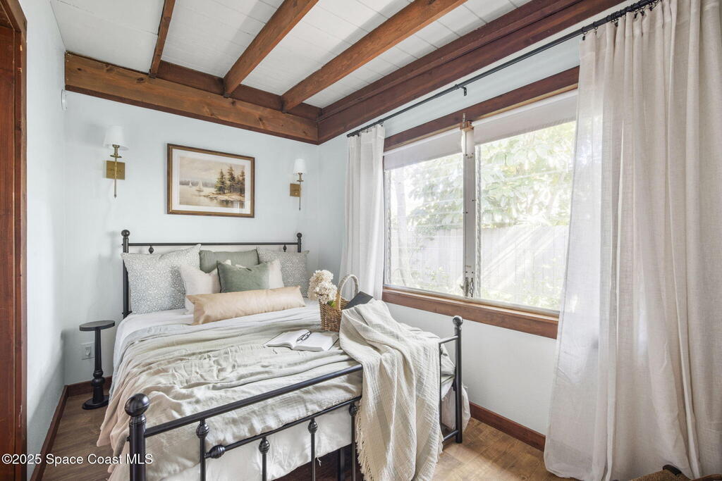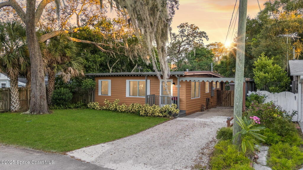 Rare opportunity to purchase a charming cottage with a pool in the most desirable location in the Eau Gallie Arts District. Step into a storybook retreat where historic character meets Florida vacation. You'll find many leather-bound books and it smells of rich cedar. This thoughtfully updated cottage captures the timeless feel of a bed and breakfast--making it an ideal opportunity for investors seeking a charming Airbnb or short-term rental in the thriving EGAD. Every detail tells a story with pristine original hardwood floors, cedar ceilings, doors and thoughtfully curated design details. Inside, you'll find two cozy living spaces, two inviting bedrooms including a primary suite with lounge and full bathroom. The family room opens to a pool bath, exceptional indoor laundry, and a private backyard oasis. Surrounded by lush Florida landscaping--towering oaks, swaying palms, and vibrant ferns--this outdoor space invites slow mornings and starlit evenings with its pool, dining area