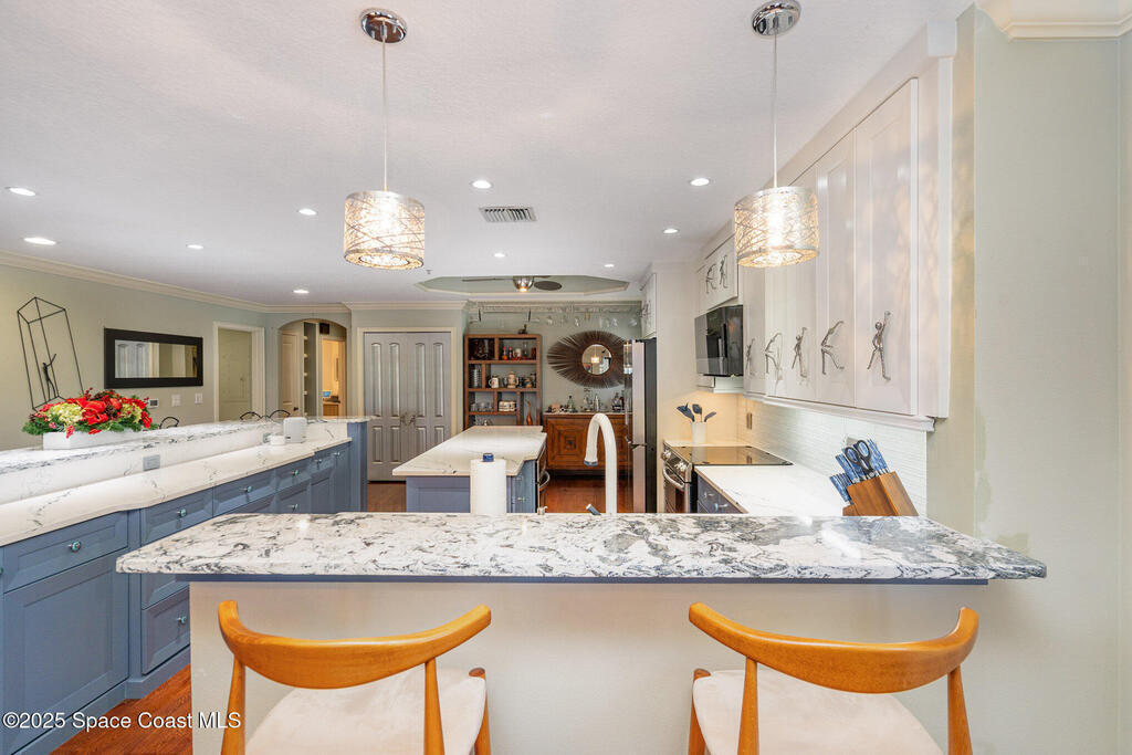Luxury Riverfront Condo - Steps from Cocoa Village! One-of-a-kind 2,600+ sq. ft. riverfront condo just steps from Cocoa Village's shops, restaurants, and events. Beautifully updated and move-in ready!$120K+ in upgrades including: Renovated primary and guest bathrooms New porcelain tile in the primary suite Updated kitchen with soft-close cabinetry, quartz countertops, dual composite sink, and custom Rubinet faucet Wraparound patio with Armor Screen automated hurricane protectionChef's Kitchen & Entertaining Spaces:Spacious prep island with secondary oven and wine fridge, plus serving/bar counter. Large laundry room/butler's pantry with second dishwasher, deep sink, refrigerator, and abundant cabinet space.Primary Suite Retreat:Built-in workspace, dual walk-in closets, and spa-style bath with double vanities, Jacuzzi soaking tub, and rainforest shower.Modern design, stunning river views, and a prime location--this condo truly has it all!
