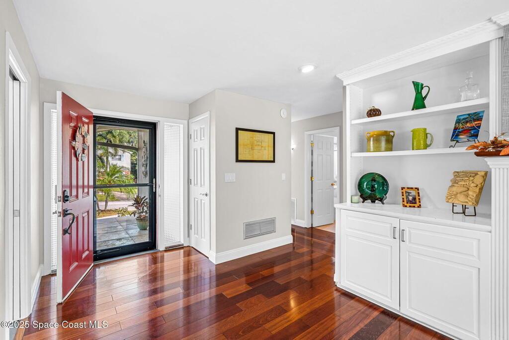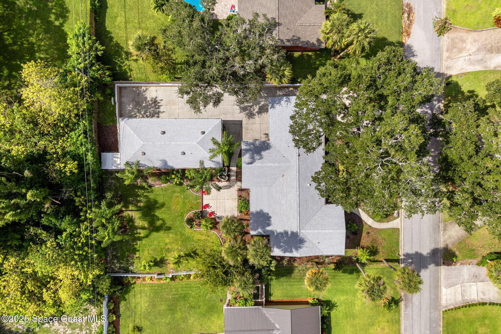 Experience the perfect blend of indoor & outdoor living in this standout single-story 4 bed, 3 bath Mid-Century Ranch w/ RARE detached 3 CAR GARAGE in the highly desirable Twin Lakes Subdivision off Indian River Dr! Set on an oversized 0.34 acre lot w/ mature trees, this property offers a peaceful setting w/ quick access to Indian River Dr, Cocoa Village, Space Center, SR 528 & I-95. Home features a large family rm w/ oversized pocket sliders leading to elevated screen porch, upgraded kitchen w/ granite & stainless appliances, bright primary bedroom w/ walk-in closet, Fully Equipped Media Rm w/ 5 speakers & 113'' screen, Detached apartment/office & garage w/ coated floor, EV charging & central vac. Recent upgrades: New Roof (2024), HVAC (2021), New Front Septic (2019), both septics pumped (2024), water heater (2019), flooring & interior paint (2025), new lights & fans (2025), aluminum screen porch (2025), irrigation/tree trimming (2025). Community park features boat ramp dock & slips.