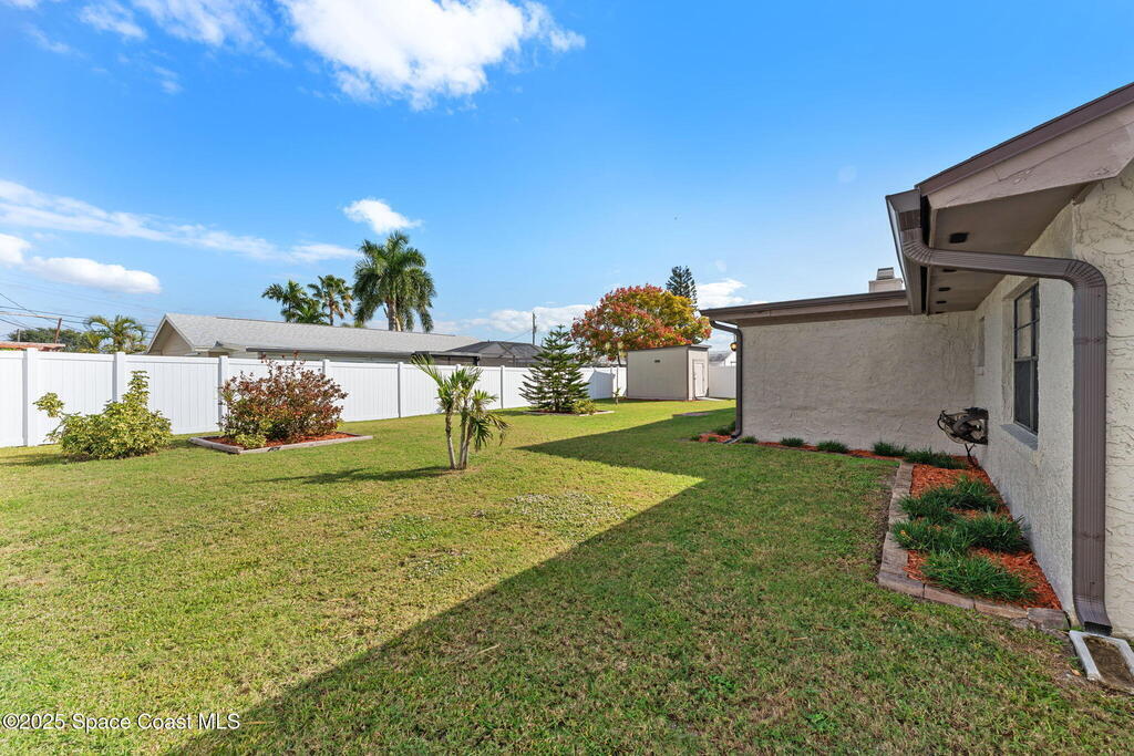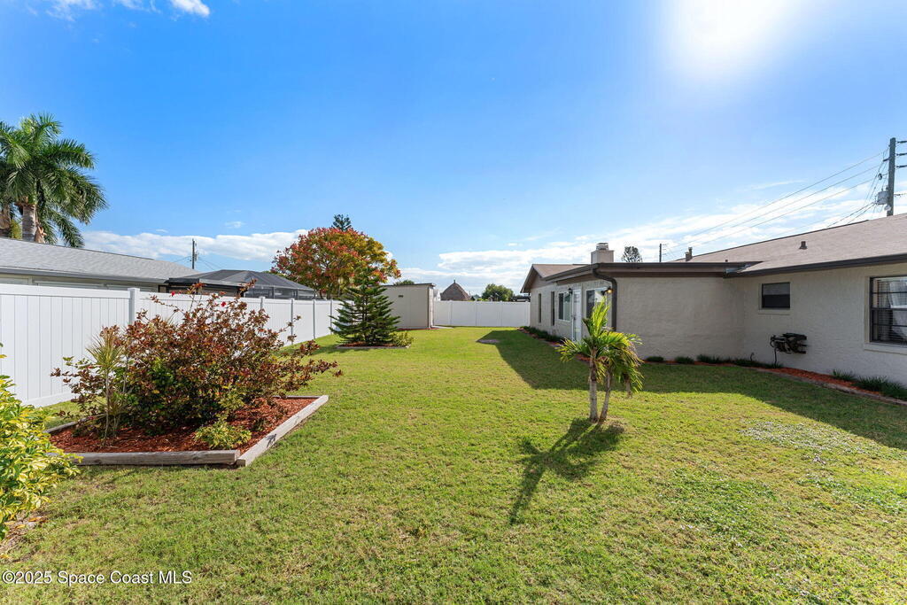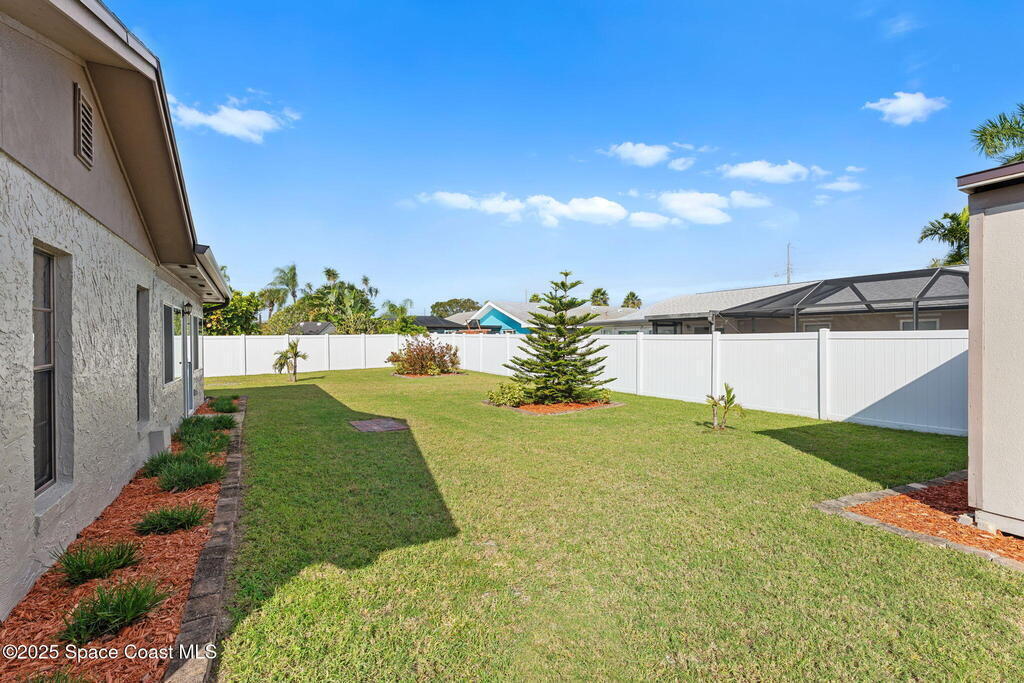 Beautifully maintained 3 bed, 2 bath move-in ready home on sought after Newfound Harbor Dr! This property impresses from the start w/ fresh landscaping, tropical palms, & great curb appeal! Thoughtfully updated w/ new roof (2019), new A/C (2023), full PEX repipe for water lines, new vinyl fenced backyard (2024), newer dishwasher & disposal, and updated front & rear doors. Inside, the spacious primary suite offers a cozy double sided gas fireplace shared w/ the family room featuring a lovely stone facade, perfect for relaxing or entertaining. Kitchen features newer cabinets, stainless appliances & decorative tile backsplash. Enjoy a large, fully fenced backyard offering plenty of privacy, room for a pool & a shed with a newer roof. Additional highlights include a 2 car garage w/ newer opener, washer & dryer included, and no HOA! Ideally located just minutes from Port Canaveral, Kennedy Space Center & Cocoa Beach. A wonderful blend of comfort, style & convenience.