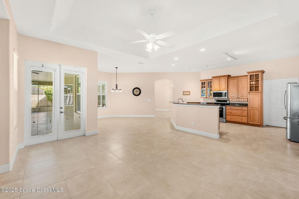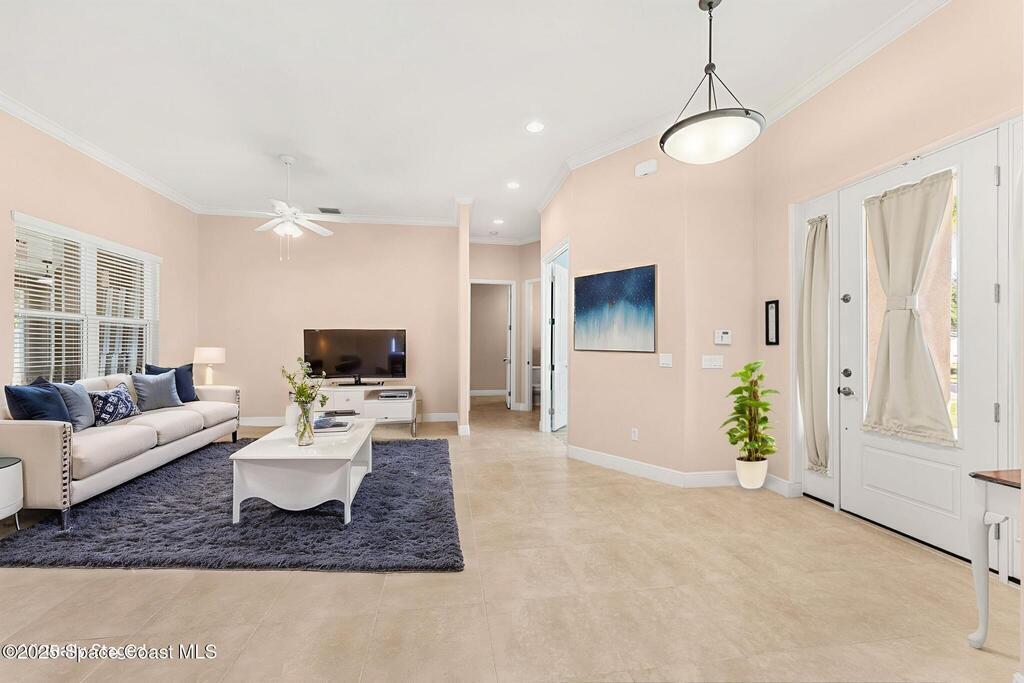Surrounded by swaying palms on a .34-acre corner lot, this South Merritt Island home offers an inviting blend of tropical charm and modern comfort. Featuring 3 bedrooms, a dedicated office, 2.5 baths, and versatile formal living and dining areas, this home is as functional as it is relaxing. The open kitchen shines with solid maple cabinetry, granite counters, and stainless appliances. The spacious primary suite includes two walk-in closets, a shower, and a garden tub. Step onto the large screened porch and enjoy a private backyard oasis filled with fruit trees. Over $120K in upgrades include a 2021 roof, impact-rated windows and doors, 2023 AC, and energy-efficient systems that help deliver a surprisingly low insurance premium. The oversized 1,200 sq ft 3-car garage with epoxy floors and attic storage adds flexibility and value. In a quiet, desirable neighborhood near top-rated schools, shopping, and Rotary Park, this home is priced below a recent $720K appraisal.