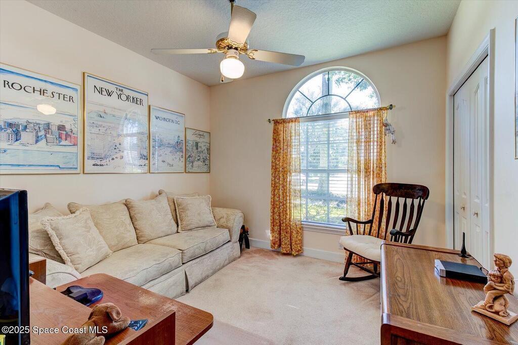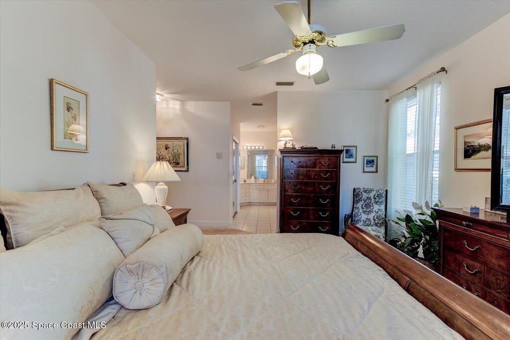 Welcome to this inviting 4-bedroom, 2.5-bath home in the desirable Bella Vista community near the active La Cita Country Club. With 2,273 sq. ft. of living space, this home is perfect for entertaining family and friends. Enjoy a formal dining room, living room with wet bar, and family room with a cozy gas fireplace. Large sliding doors fill the home with natural light and open to a spacious covered, screened, and tiled patio ideal for relaxing or gatherings. The eat-in kitchen offers a breakfast bar and ample space for casual dining. The primary suite features a large walk-in closet, ensuite bath with separate tub and shower, and an adjoining bedroom perfect for a nursery, office, or gym. Additional highlights include a 2-car garage plus golf cart garage, indoor laundry, and half bath. Conveniently located near shopping, dining, the Indian River, Kennedy Space Center, and area beaches. Enjoy the best of the Florida Space Coast lifestyle in this and versatile home!