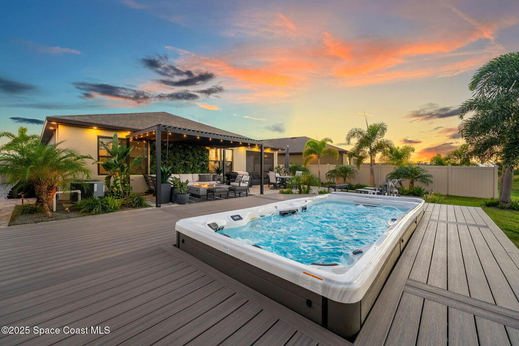 Designer-Curated Perfection on the Preserve blends modern comfort w/ artful precision in a 2023-built home that feels both refined & inviting. Professionally designed w/ an editor's eye, every surface makes a statement from the seamless flow of LVP & tile flooring to the rich textures of designer wallpaper & contemporary brass accents. The open-concept layout unfolds w/ natural light & sophisticated ease, where the kitchen's expansive island anchors spaces made for gathering & entertaining. Glass sliders frame tranquil preserve views & lead to an outdoor sanctuary featuring a screened patio, pergola, spa & fire feature surrounded by lush tropical landscaping. The primary suite delivers a true retreat w/ dual closets & a spa-worthy bath, while 3 additional bedrooms offer flexibility for guests, work, or leisure. Set w/in a gated community w/ a resort style pool & manicured common areas, this residence captures the essence of modern luxury, intentional, inspired & beautifully composed.