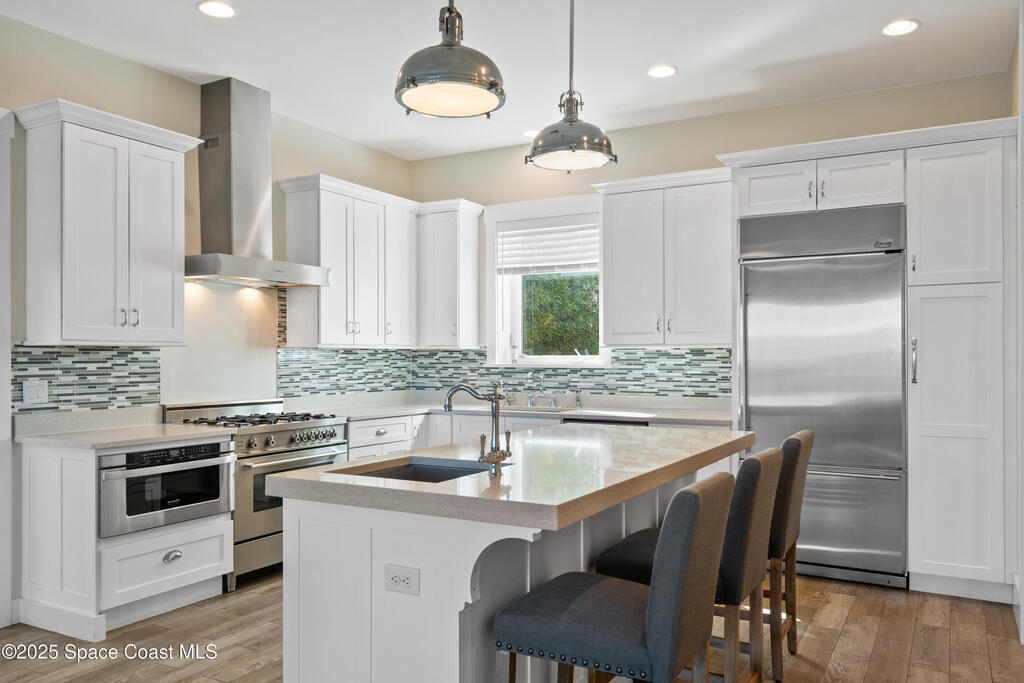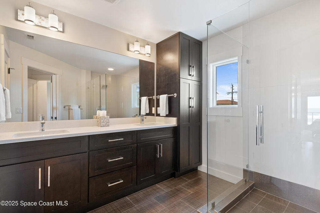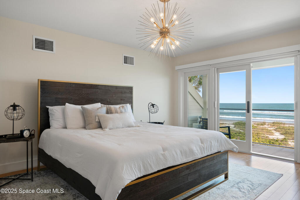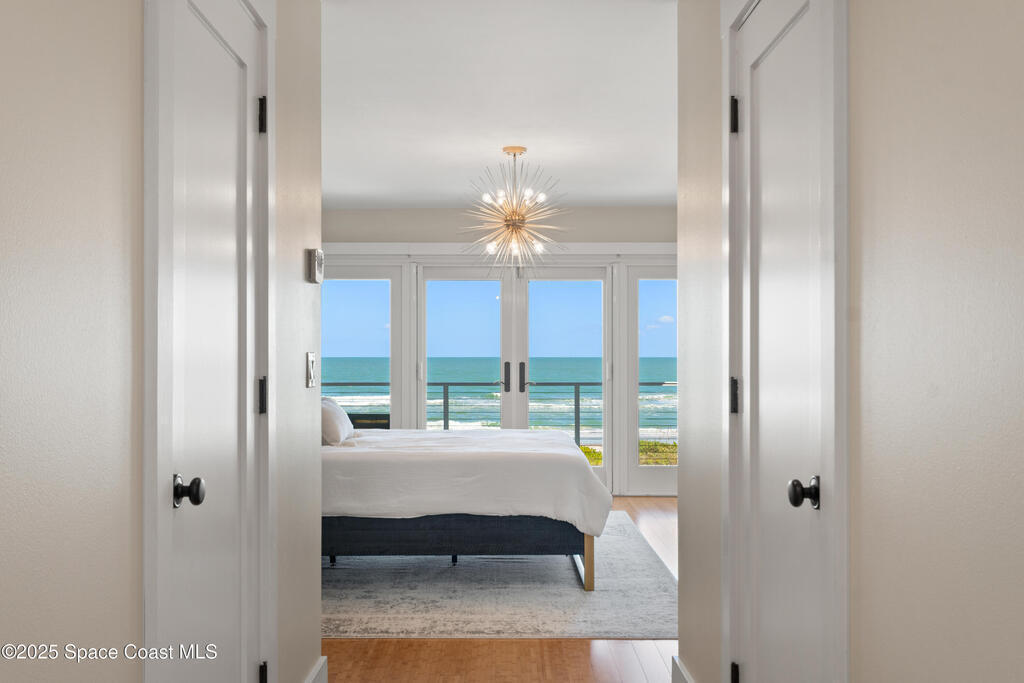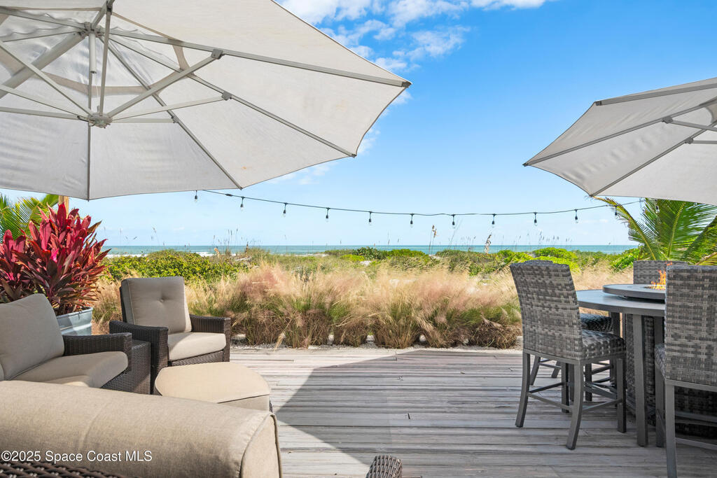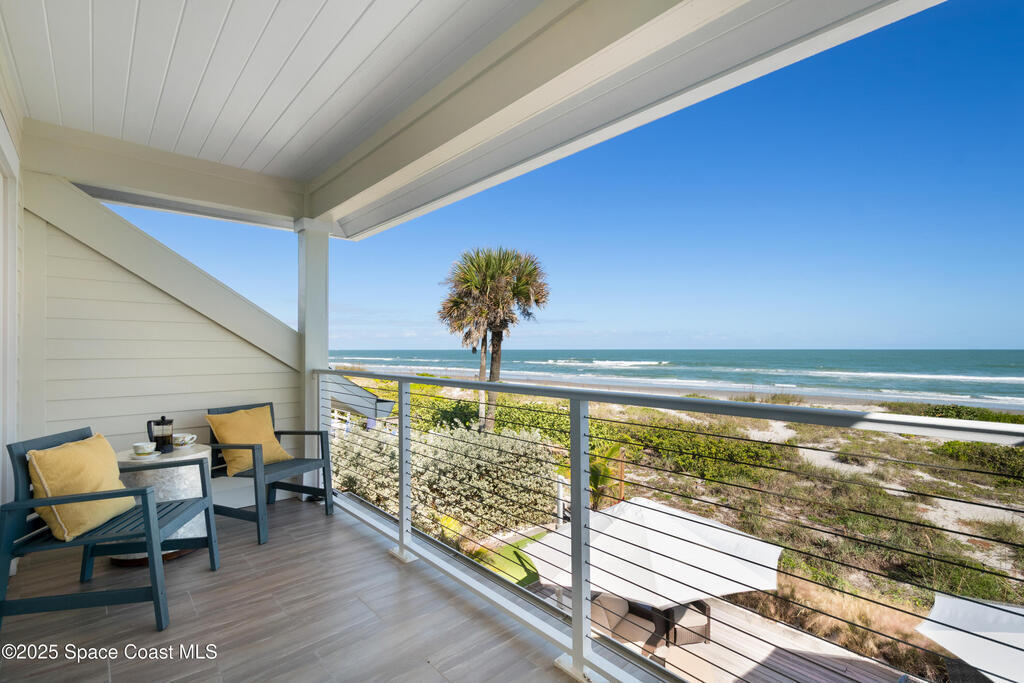 Direct Oceanfront Cocoa Beach Luxury -- Privately gated and custom-built in 2011, this exceptional residence blends timeless design with modern craftsmanship. Wide-open living spaces filled with natural light flow seamlessly to an expansive 800-square-foot oceanfront deck for effortless indoor-outdoor living. The chef's kitchen features natural gas cooking and a Bertazzoni Italian range. The upstairs primary suite is oversized with a private oceanfront porch offering the home's most captivating views. Three additional bedrooms are downstairs, including a private guest suite with its own bath and access to a screened patio. An oversized two-car garage with a versatile guest suite or office above overlooks the river, while a backyard putting green adds the perfect coastal finishing touch.