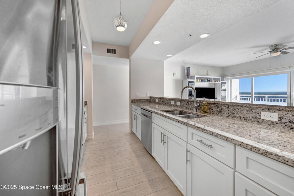 Luxury 2 bedroom, 2 bathroom direct riverfront condo. This 2nd floor home offers panoramic views from your private balcony and main living areas. Front row seating for historic rocket launches and dolphin sightings! Luxurious features include granite countertops, soft close cabinetry, breakfast bar, 4 inch baseboards, tile plank flooring throughout and stainless steel appliances.This is an elevator building with a secure lobby and garage parking is included. River Palms offers a riverfront community pool and spacious recreation room with full kitchen. Walking distance to historic downtown Titusville. Ideally located close to restaurants, shopping, Kennedy Space Center, beaches and 40 minutes from Orlando International Airport. Enjoy the Florida lifestyle! Furnishings may not be as depicted in pictures.