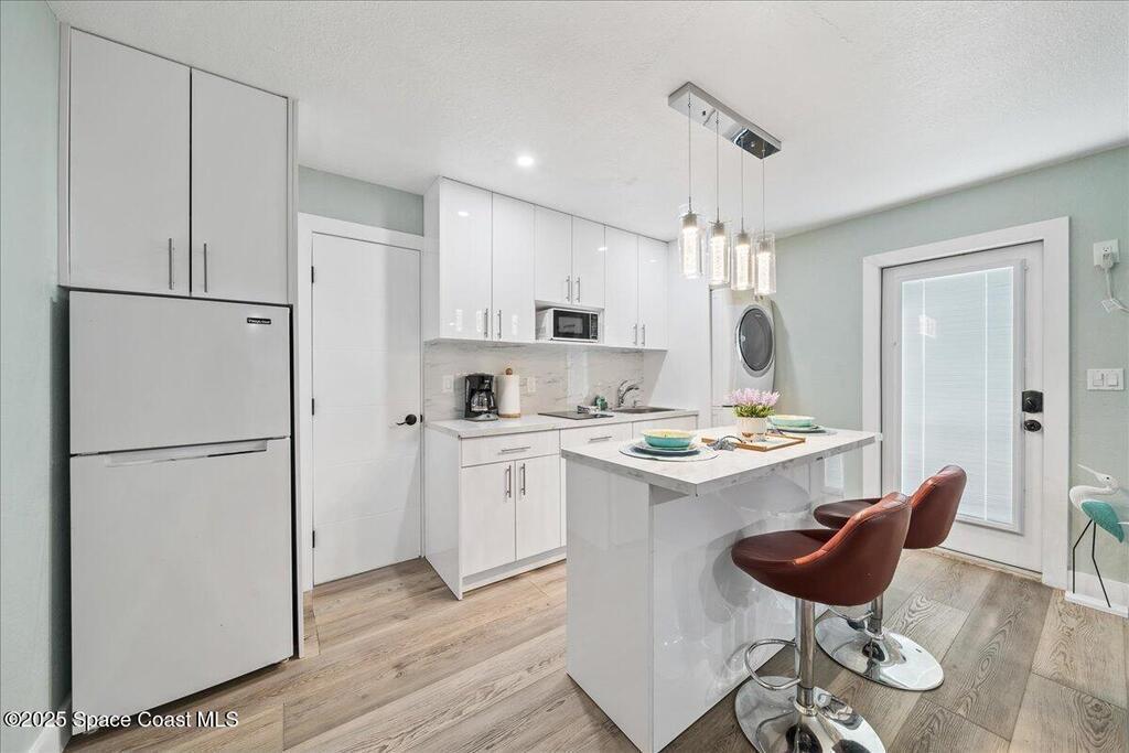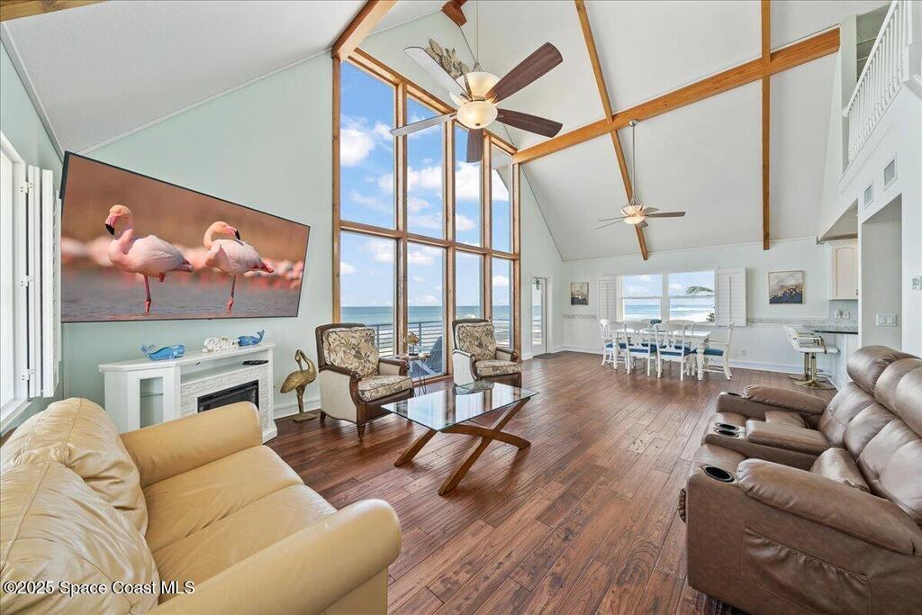 The ocean views from this stunning three story direct oceanfront home will impress! This house boasts 6 bedrooms/3.5 baths and new roof in 2021. It has two kitchens, a lofted office and options to lock off different suites to accommodate multi generational living and guests that visit.. There is a wall of floor to vaulted ceiling windows in the great room over the ocean that brings the ocean front and center and floods the space with natural light. It is such a bonus to have two kitchens and a layout like this that has one suite downstairs and another on the second and third level. A deep, wrap around balcony provides a perfect spot to relax and enjoy the scenery. The property offers direct access to quiet beaches, perfect for leisurely strolls and water activities. This home is ideal for a peaceful retreat on the coast. Long driveway and turn around make for easy access to A1A. Bike path across street from home goes on for miles and miles. Super quiet location in Melbourne Beach.