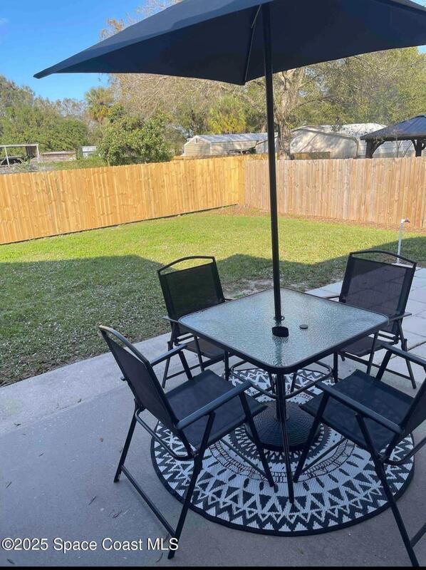 Cozy house on a full 1/4 acre lot. 2 Bed 1 Bath w/ covered screened in porch. Home has nice upgrades and conveniently located in a desirable area with natural mature trees around. Not far from shopping, restrauants, and the beach. Concrete block construction, paver driveway, exterior stone accents, tile floors throughout, newer kitchen cabinets, quartz countertop newer stainless steel appliances, newer remodeled bathroom, roof 2018, no HOA with a huge large fenced in yard for your pets, park boat, trailer, rv etc. Well/ Septic. Septic last pumped 2023. Hot water heater is new. Furnishing are optional if buyer is interested.