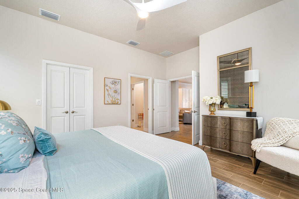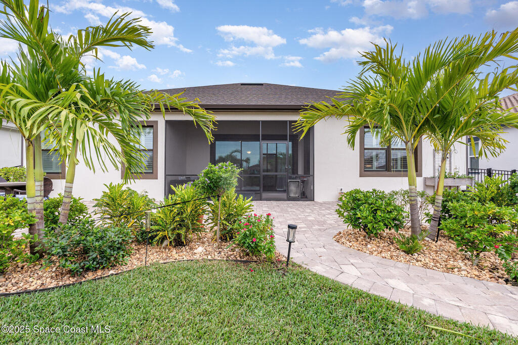 Experience the best of modern multi-generational living in this single-story 2024-built 4-bedroom, 3-bath home in sought-after Reeling Park, West Viera. Designed for today's lifestyle, the open-concept In-Law Floor Plan features elegant tile flooring throughout, a spacious kitchen with quartz countertops, extra pantry cabinetry, and an expansive island perfect for entertaining. Enjoy stylish touches including plantation shutters and luxury finishes. The primary suite and guest accommodations provide flexibility for extended family or guests. Outdoor living shines with front and rear screened porches, an expansive paver patio, and a fenced yard professionally landscaped for privacy, all in a peaceful park setting. Ideally located near top-rated schools, fine dining, shopping, and the resort-style Addison Village Club. You're less than 20 minutes to the beach and minutes from championship golf courses. Sellers offering up to $5,000 in closing cost credits with accepted offer.
