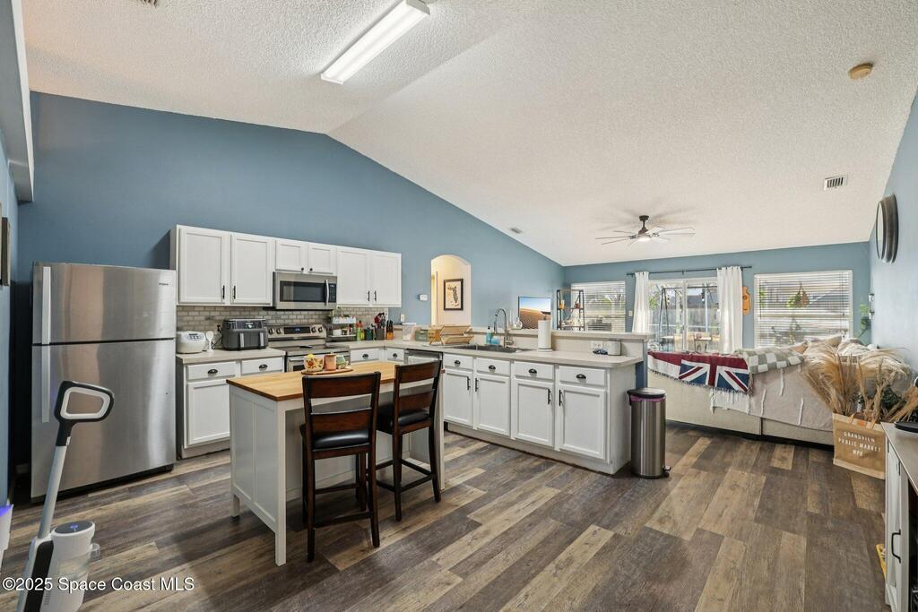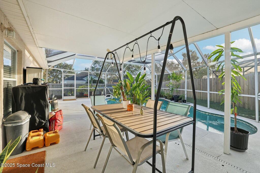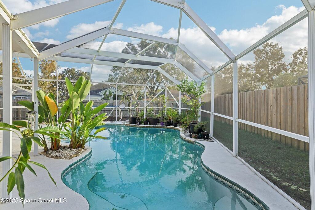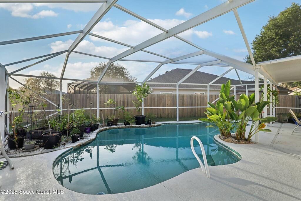 Beautiful 3-bedroom, 2-bath pool home on a spacious corner lot! Enjoy your private screened pool and lanai with all new screening and hardware (2025), plus a fully fenced backyard and covered porch offering plenty of space to relax and entertain. Inside, you'll love the new LVP flooring throughout, vaulted ceilings, and natural light in every room, creating a bright and open atmosphere. The extra-large kitchen features newer stainless steel appliances, a pantry, and abundant counter space! This home offers multiple living areas including a formal living room or office/bonus room, formal dining room, and a family room overlooking the pool. The extra large primary suite includes a walk-in closet and peaceful backyard views. Roof 2022, HVAC 2013. Located within walking distance to the elementary school and just minutes to Cape Canaveral, Kennedy Space Center, Publix, shopping, and I-95--perfect Florida living! Relax, entertain, and make this your own private retreat!