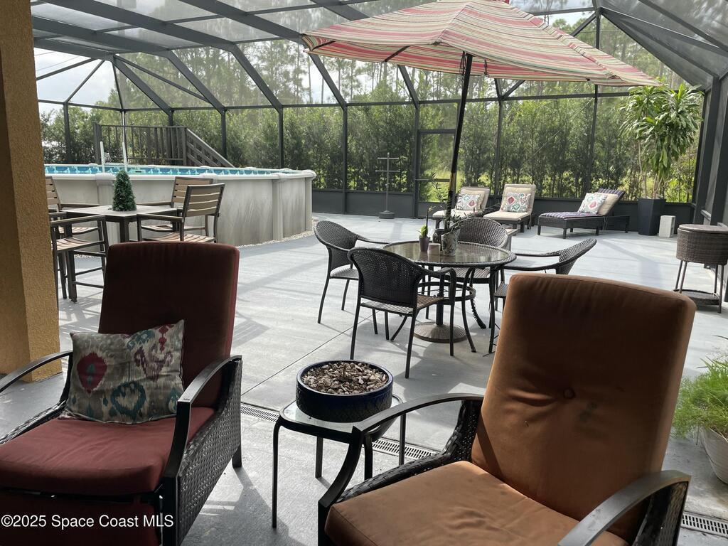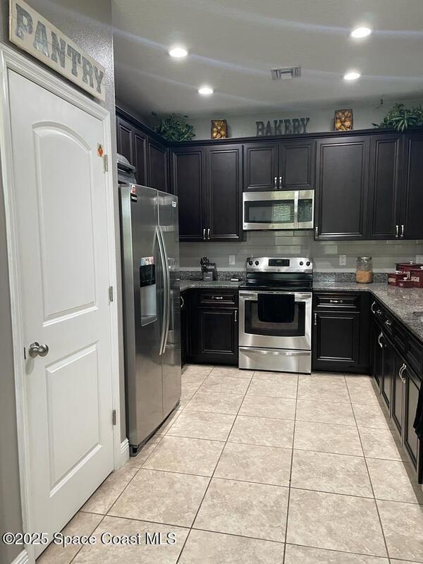 Welcome to your own tropical retreat in a quiet Palm Bay neighborhood! This 3-bed, 2-bath 2017 home offers tile floors throughout, a modern kitchen with granite countertops, stainless-steel appliances, and a dining area with a stylish tray ceiling. The master suite features dual sinks, a garden tub, and a separate walk-in shower. Enjoy outdoor living with a screened porch, pool, and summer kitchen complete with stainless-steel grill. Extras include washer, dryer, ceiling fans, updated fixtures, outdoor furniture, fire pit, shed, and children's play area. Move-in ready and beautifully maintained, this home combines comfort, style, and Florida charm. Don't miss it!