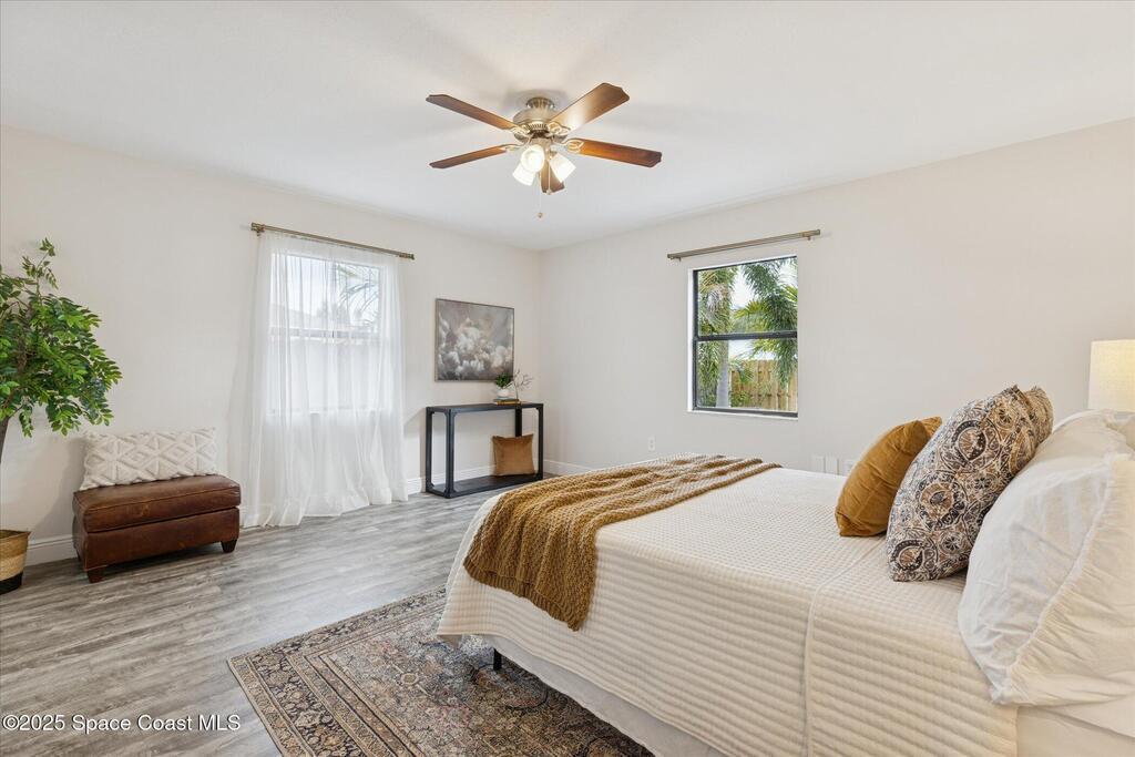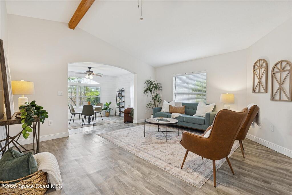 Remodeled move-in ready 3 bed, 2 bath home with a 2-car garage and an oversized driveway. Easy single-level living with a tropical palm tree-filled backyard. The updated kitchen offers granite counters, additional cabinetry for pantry items, stainless steel appliances, ample space to add your dream island and an open flow to the living and dining spaces. A flexible bonus room--perfect as a sunroom, den, office, or second living area--is wrapped in whitewashed shiplap and surrounded by windows for all-day natural light. Fill it with all the plants your heart desires! The wood beam spanning the living room ceiling adds another touch of character. Your primary bedroom has an ensuite with granite counters and a clean, classic subway tiled walk-in shower. Even the guest bathroom is remodeled! Step outside to a fully fenced backyard that shouts Florida lifestyle, ideal for relaxing or weekend cookouts. Love the outdoors? You're a short drive to Kiwanis Island and Kelly Park with public boat