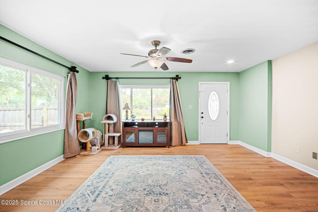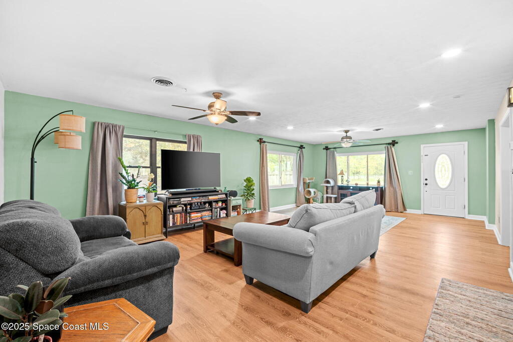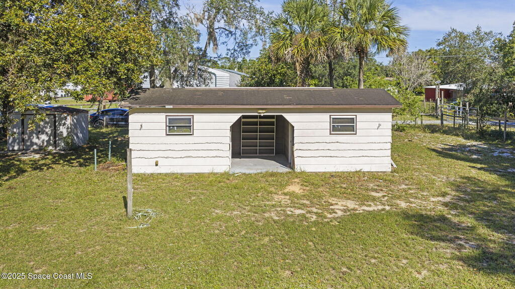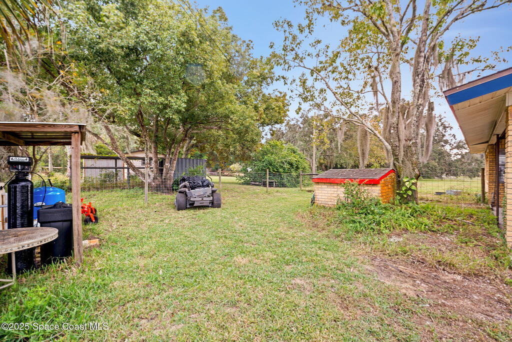 Welcome to Mims, Florida!Sitting on 2 beautiful and dry partially cleared acres, this 1,700 sq. ft. home offers 3 spacious bedrooms and 2 bathrooms. The property features a large carport, indoor laundry located in a room outside the kitchen slider, and laminate flooring throughout. Most windows have been upgraded to hurricane-impact, and the A/C was replaced in 2017. Water heater 2025, The private well system has been updated (2025) with a brand-new filter, water softener, and pumps. The yard is fully fenced and includes an outbuilding for additional storage or workspace. Located in the growing Mims area, this property offers peaceful country living while being just a short drive to the Space Center. come experience the Mims lifestyle today!