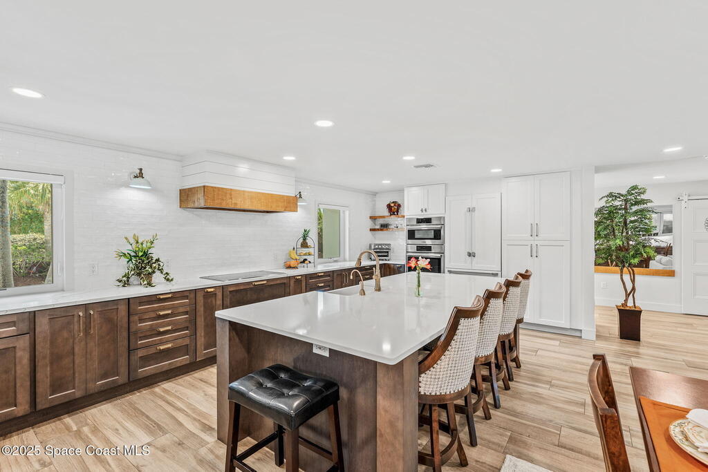 This fully reimagined 4-bed, 2.5-bath home delivers 2,562 sq ft of high-end living space, combining smart upgrades & standout style in a prime coastal location. A rare find, it includes a spacious 2-car garage plus an impressive 32'9'' x 16'4'' RV garage. Inside, extensive updates include--hurricane impact windows & doors, all sewer & supply lines replaced, new electric breaker box & significant electrical rewiring. The renovation features solid core interior doors, quartz countertops, custom birchwood kitchen details, top-tier SS appliances & porcelain wood-look tile throughout. The primary suite includes a walk-in closet and spa-like bath. Outside, enjoy a private resurfaced 15' x 30' pool, fully updated lanai & fenced yard with lush tropical landscaping. Incredible .40 Lot. Whole house generator. Located in the SOFA district within Ocean Trails HOA, w/ private deeded beach access just steps away, plus nearby parks, tennis courts, boat launch & more.