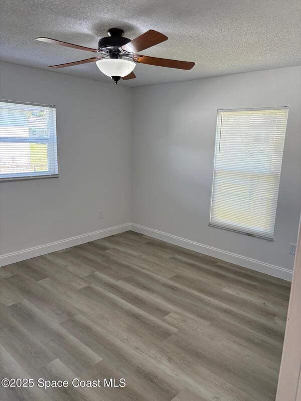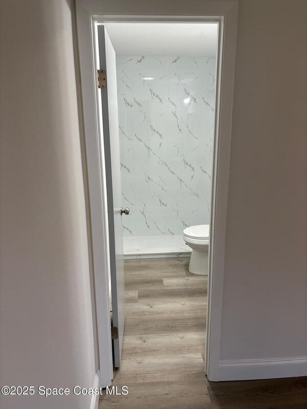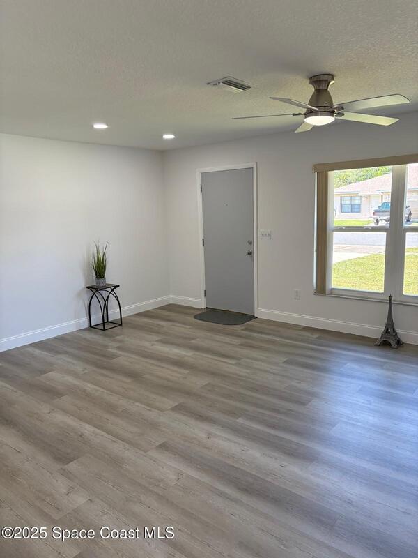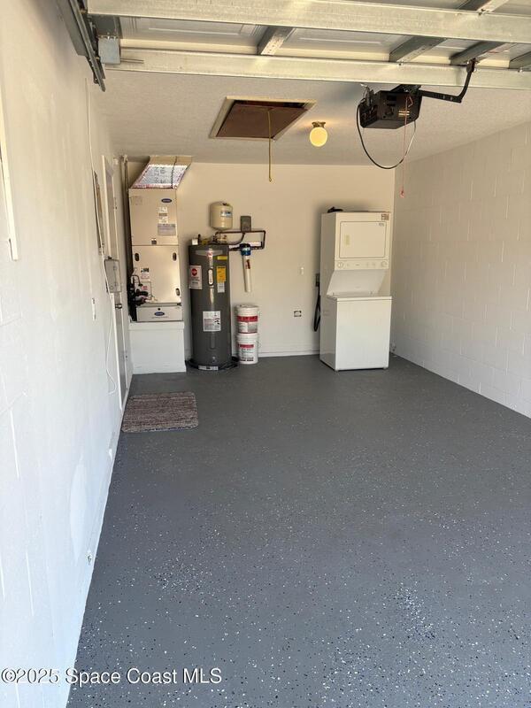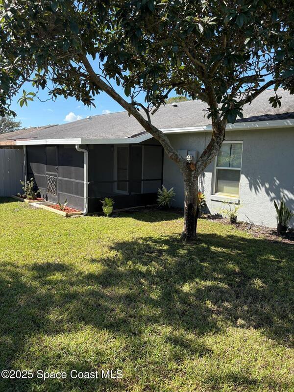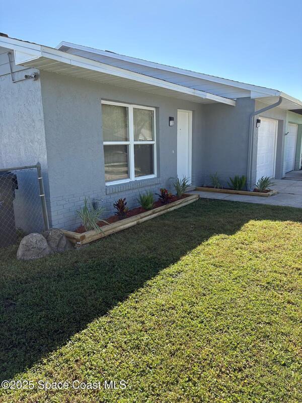 MUST SEE TO APPRECIATE!!!! Fully Remodeled Duplex in October 2025 - NO HOA!!!! Excellent location close to shopping, I-95, beaches, and only 35 minutes to Orlando International Airport. Features brand new upgraded laminate flooring, All new interior/exterior paint, LED Lighting, ceiling fans with remotes and spacious walk-in closets. Beautifully remodeled bathrooms with skylights, plus a brand new kitchen with soft-close cabinets, Lazy Susan, quartz countertops, and island with extra storage. New dishwasher, stove and all appliances are included. Stacked washer and dryer, water heater was replaced in 2016 with thermal expansion tank and compact water softener/filter system. Double pane windows (rated up to 140 mph winds) and all screens and Hurricane Shutters are included. Roof was replaced in 2019. Primary suite offers a sliding door to the screen porch and a fenced backyard with a 9x8 storage shed. Schedule your showing today!!