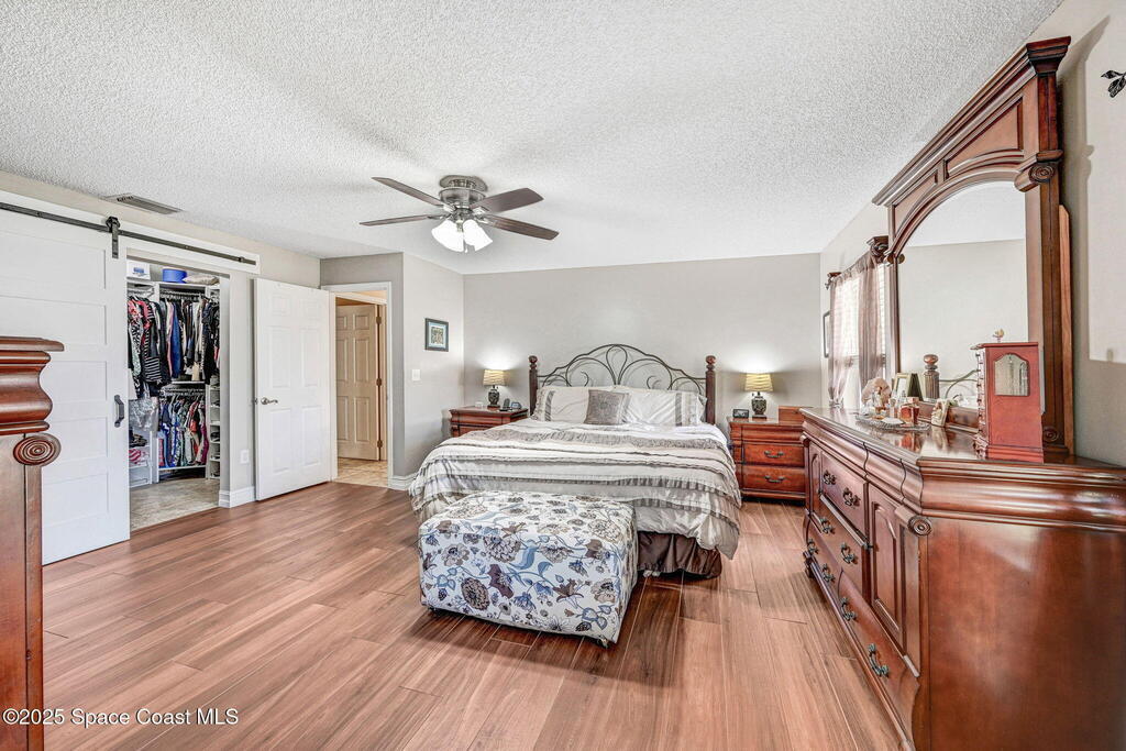 WELCOME HOME! 4 Bedroom concrete block home on City Water located in the desirable Lockmar school district. So much to love here! The new roof was installed in 2023. The kitchen boasts new appliances, upscale cabinetry, granite counters & natural stone flooring. The refinished Master suite is large & includes a thoughtfully remodeled luxury master bath & walk-in closet with built in shelving & ''barn door''. The split floor plan delivers separate living, dining & family rooms, all with gorgeous Brazilian Teak wood flooring and all 4 bedrooms have porcelain tile floors, no carpet here. The garage is oversized & the front-loading Washer & Dryer are included, too. The backyard is all fenced with an extended screened lanai that will become an extension of your living space, perfect for entertaining. The lush landscaping is fed by the sprinkler system with a dedicated private well. This property is close to 95 for a quick commute & near shopping, banking, restaurants at Hammock Landing.