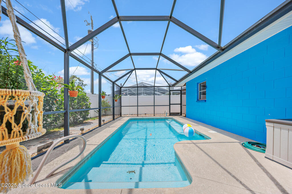 Welcome to Diana Shores, where comfort and convenience meet! This 4 bedroom 2 bathroom pool home features a newer roof, and hvac, two spacious living areas, and an impact sliding glass door that opens the full length of the room perfect for indoor outdoor living. Enclosed lanai, a grassy area for your fur baby, mature coconut trees, and a shed for storage. Enjoy a circular pull in driveway, easy access to Port Canaveral, and all Orlando has to offer. Whether you live locally, or are relocating from out of state the comfort, and warmth of the Diana Shores Community is true Florida living.