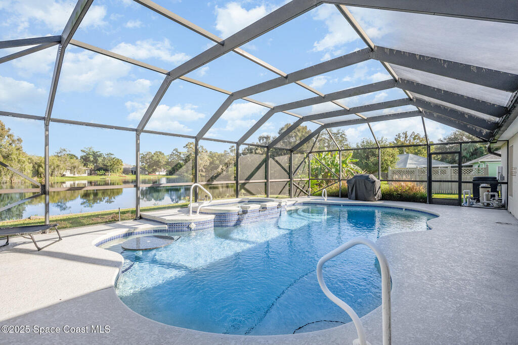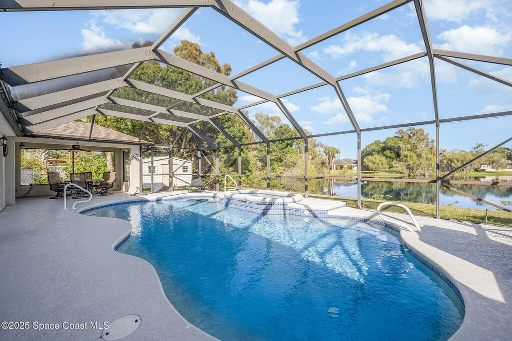 RV or boater's Dream Home! 4 bedroom, 2 bath lakefront home with private pool/hot tub, RV garage (9'9'' entry x 24' deep) and carport for boat or RV (20x40, over 12' clearance). Just minutes from shopping and dining but tucked away from the hustle and bustle with NO HOA! 2005 built home with custom features including 10' ceilings in the living area, tray ceiling in Primary and coffered ceilings in the entry, dining room and flex space. This is a great family home with room for all of your toys!