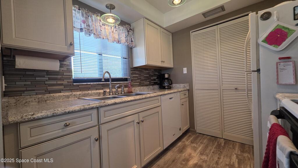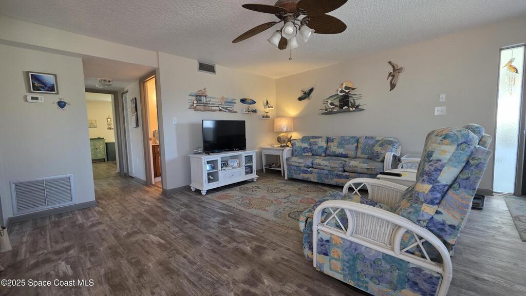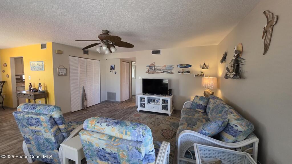 Light, bright & breezy!! Come see this beautiful 2 bedroom, 2 bath end unit in Canaveral Bay. The owners took pride in their home and it shows. Home was renovated just a few short years ago. New windows, new flooring, fresh paint, ceiling popcorn removed and skim coated, new cabinets in the kitchen, custom made cabinets in guest bath, new water heater 2025, newer hardly used dishwasher. Mostly all furniture included except dining room set, desk and foot board console in main bedroom. Enjoy sunrise and sunset or watch the rockets go up and the boosters come down on your wraparound patio that overlooks the pool and tennis courts. Heated pool has a hot tub, sauna, rest rooms and is gated. 3rd floor location & extra windows allow for the most amazing sea breezes to flow through the home. Community also has a car wash area and kayak storage!! Don't let this one slip by!!!