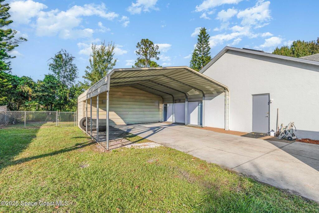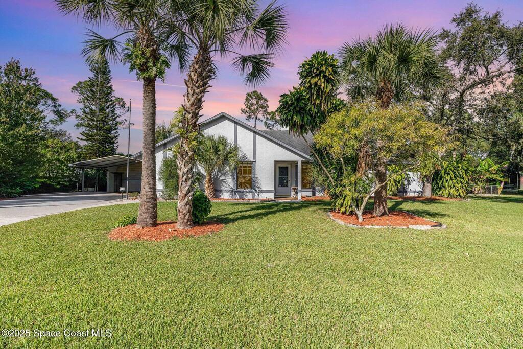 Looking for an extra-large lot in Brevard County? This property could be the perfect fit! This spacious home offers a split floor plan with 3 bedrooms, 2 full bathrooms, and an additional den/family room for flexible living space.Enjoy the outdoors on the large covered porch, and take advantage of the two carport spaces plus a handy storage shed/workshop. The interior and exterior have been freshly painted, giving the home a clean, move-in-ready feel.Energy-saving solar panels are connected to the water heater to help lower your electric bill, and storm shutters are included for added protection.This is an amazing property you won't want to miss!