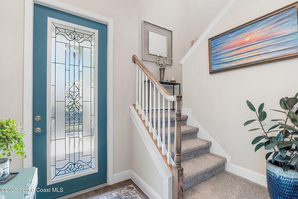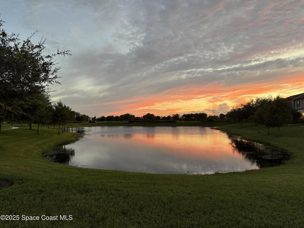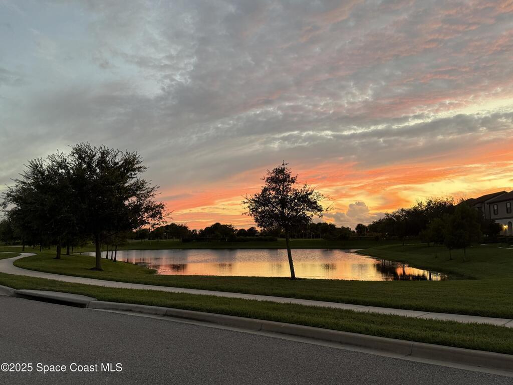 This beautiful home in the Arrivas community, built in 2019, is right in the heart of Viera and available for rent for the first time in December. Home has a desirable sunset/west-facing location and is across from The Avenues Viera, Trader Joe's, Duran Golf Course, and Urban Prime/Food Truck Park. The home is immaculate, bright, and sunny, with a first-floor master suite that opens to the courtyard through French doors. Two bedrooms (one with a porch), two bathrooms, and a laundry room are on the second level. Home has many upgrades, including 10 ft ceilings, a gas stove, hurricane glass etched glass front door, epoxy garage floor, tile/carpet and so much more. Arrivas is a maintenance-free HOA community (owner pays) where all landscaping and exterior features are maintained. High-speed ATT Fiber and very low utility bills (renter pays). The street is quiet with minimal car traffic and has a scenic lake/sunset view every day. See rocket launches right down the street or from the