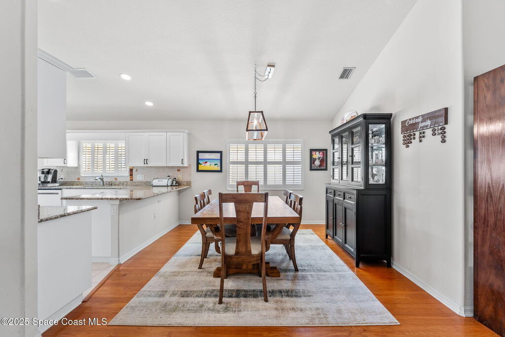 Move in ready with 3 BRs PLUS Florida room/FLEX space that is perfect for a home office or den. The updated kitchen features new white shaker cabinetry, granite countertops, new refrigerator and a bay window. The primary bathroom has a huge updated shower with glass enclosure. Accordion shutters on all windows and sliders, and plantations shutters throughout all interior windows. Hardwood flooring in main living areas. Other features included an updated dining room chandelier, a second refrigerator in garage, an extended patio area to enjoy the Florida weather, and vaulted ceilings. This home is situated in an active 55 + community offering tennis, pickleball, billiards, fitness center, and movie room. Ideally located in East Viera offering easy access to I-95, the beaches, Viera shopping and restaurants and a brand new Publix that is being built nearby.